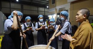 農曆12月初八是釋迦牟尼佛成道日,也稱法寶節,民間又稱臘八節。臘八節的由來是佛陀接受牧羊女的供養而後成道。老師說佛光山每年在這一天也會發動全世界的僧信二眾同步煮臘八粥,以此表達對佛陀成道的歡喜,借由此因緣感謝十方大眾的護持。據說這一天,全馬佛光山道場烹煮了16萬份與人結緣,此次殊勝的因緣同學們也有幸參與。