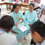 當晚,東禪佛教學院學生與菩提達摩精舍的學生分組交流,在分享彼此的學習心得和兩地文化差異,過程充滿歡笑聲,雖然語言有異,大家依然樂在其中。