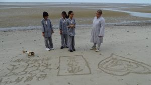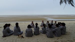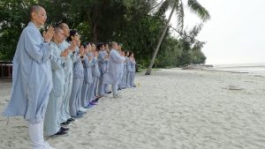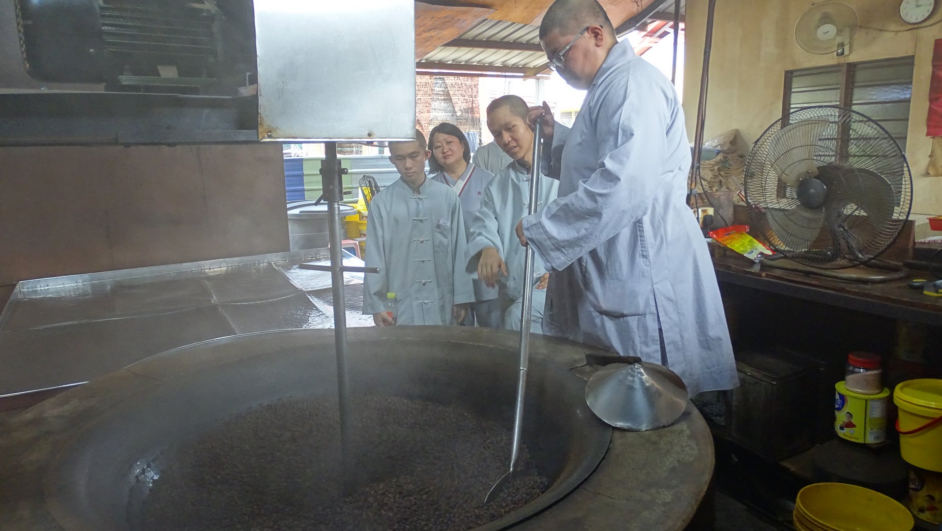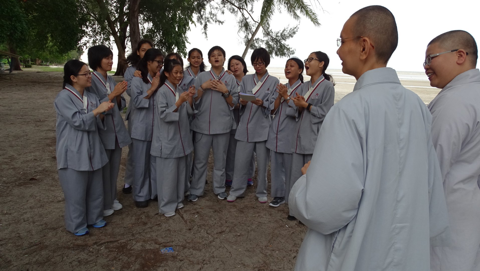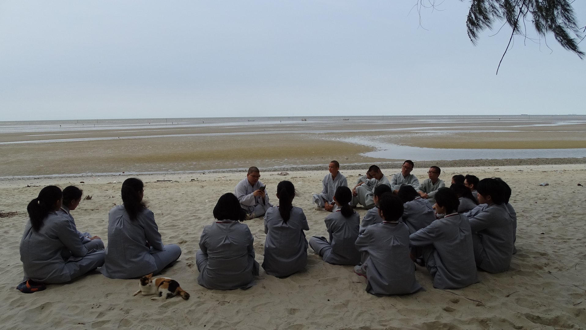 放香日,东禅佛教学院师生走出教室,来到摩立海滩感受大自然的气息。面对宽阔无尽的大海,师生先是诚心诵上一部《心经》,学习把心放空,接着大伙儿在海滩上作画、堆沙堡,欢喜合唱,玩得不亦乐乎,最后还围坐在沙滩上,分享星云大师的文章。接着一行人到Tanjung Sepat新村,体会乡间的淳朴风情,并参观菇园与传统咖啡老店,了解菇蕈与咖啡的生产过程。师生们度过了一个悠闲充实的放香日。