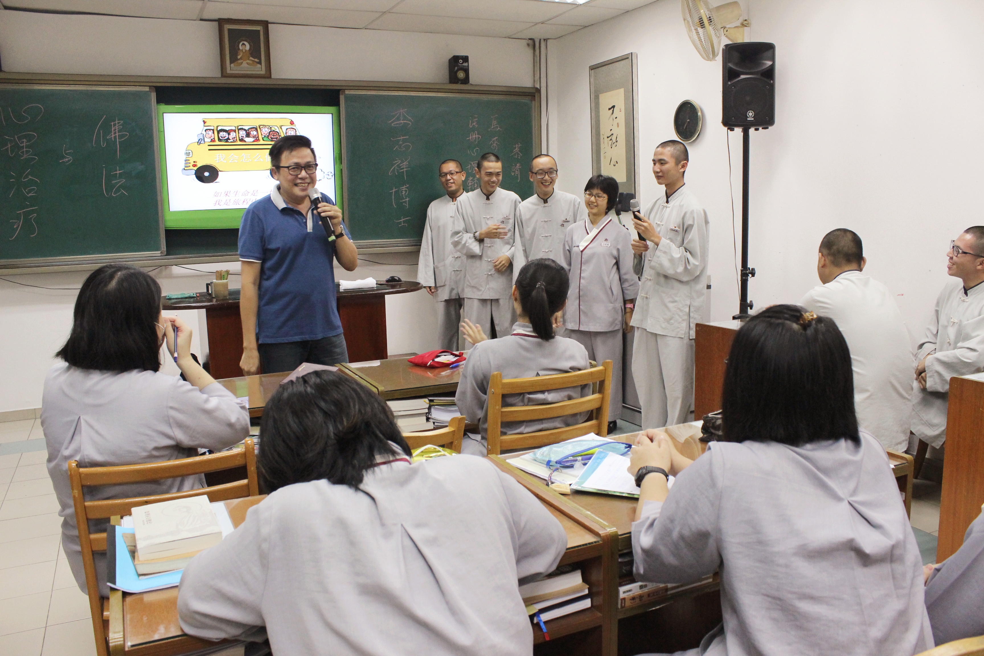 馬來西亞注冊心理輔導師李志祥博士1月2日再次應邀前來東禪佛教學院與全日制及周日班同學講授《佛法與心理治療》,有著20多年心理臨床經驗的李博士向同學們分享了佛法與心理學的迥異,促使大家對自己的佛教信仰產生了更大的信心。