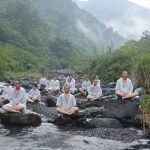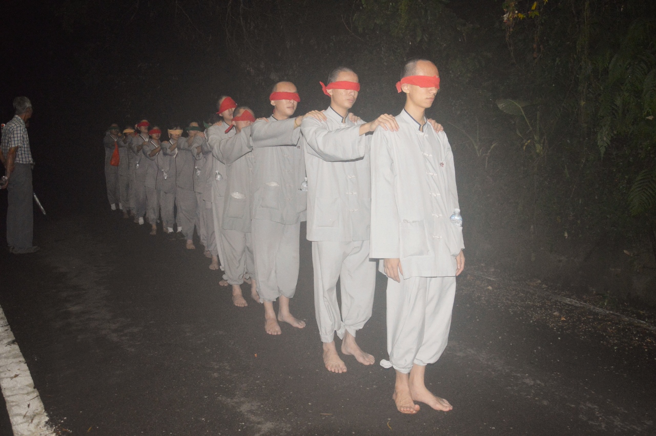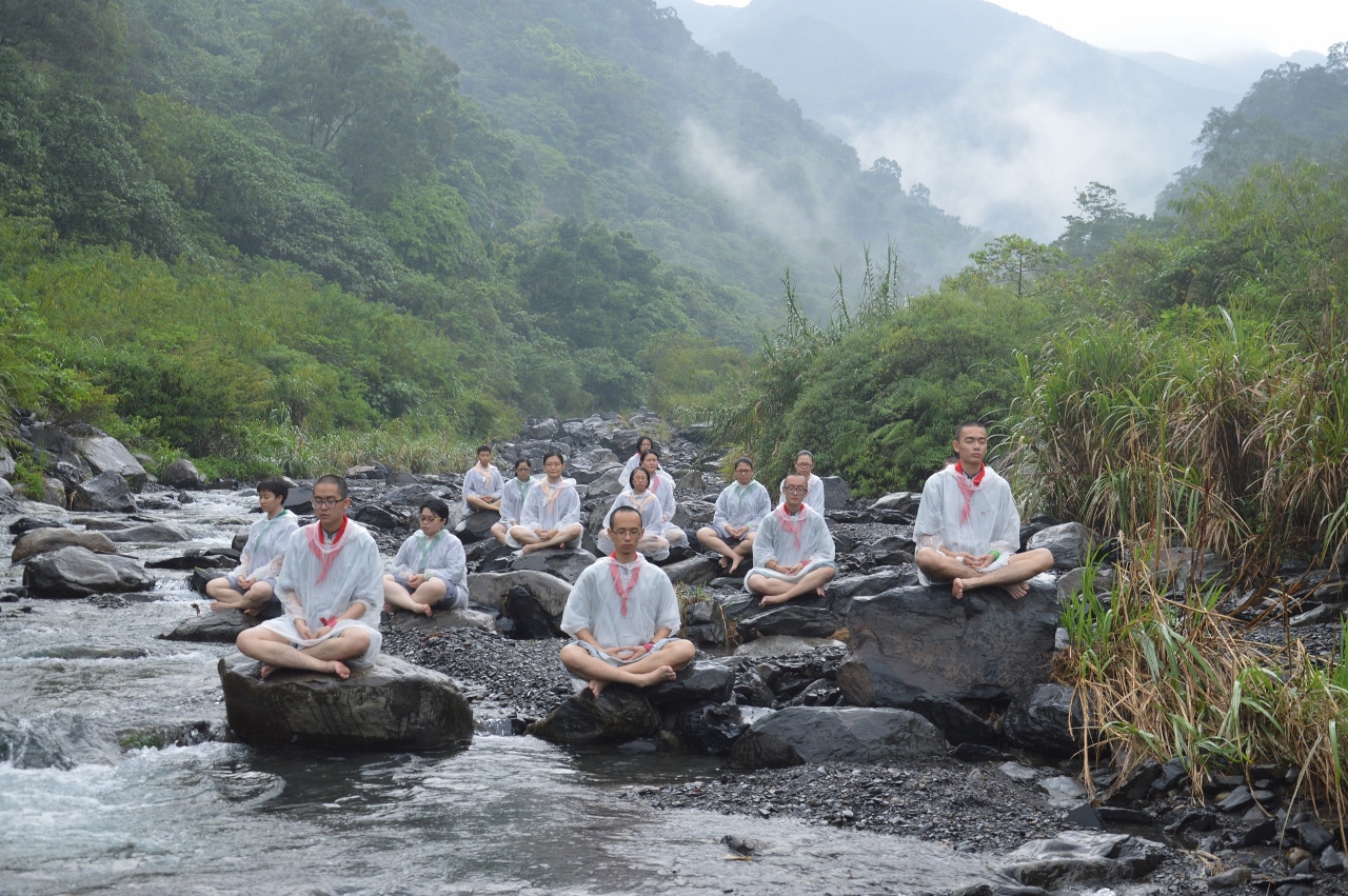 來到靈山寺,在覺年法師精心安排下,大家上了一堂永生難忘的生命教育課程──探索教育樂中學,學習「動」中找自己。為了讓學生成長,法師還特別邀請王教練來教授,包括赤腳走溪床、黑暗森林探索等,一系列酸甜苦辣的安排,為了要訓練同學的團隊精神以及無我的處世態度。