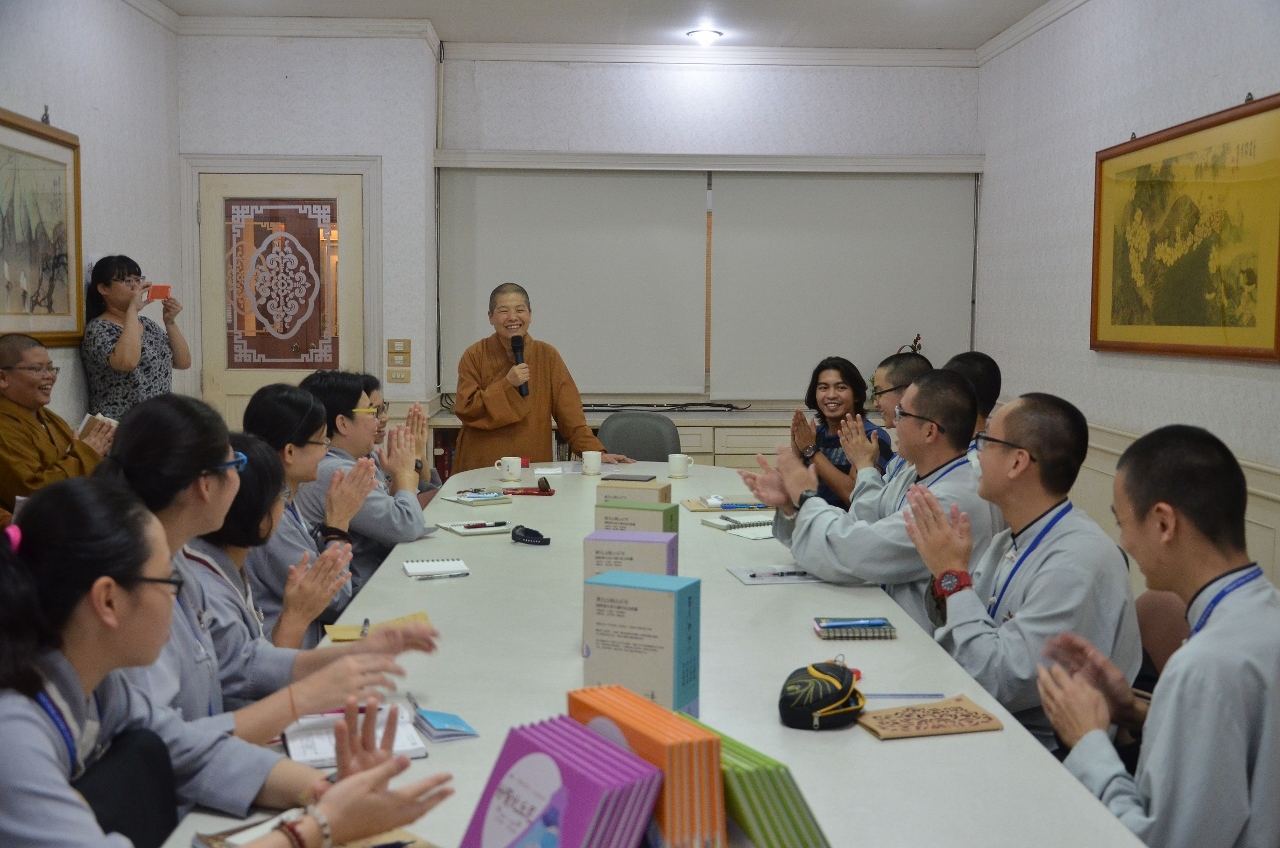 參訪台北道場時,也參觀各單位主要樞紐,如人間衛視、國際佛光會、中華佛光青年總團、中華佛光童軍總團、人間佛教讀書會總部、香海旅行社等,讓同學瞭解大師推廣人間佛教事業單位的重要性。住持覺元法師幽默有趣的課程互動,引導同學從煩惱中見到自己的清靜本性。