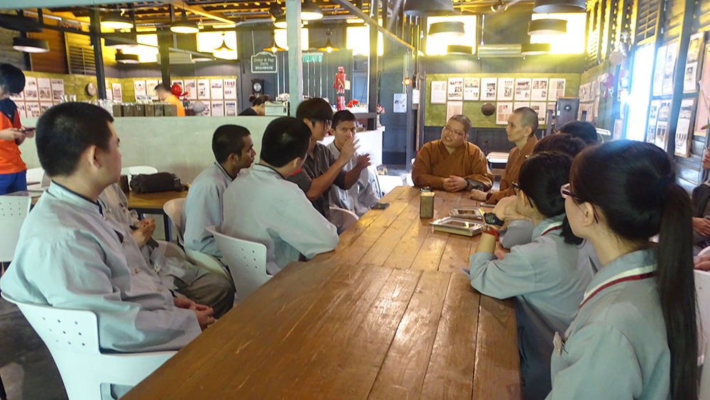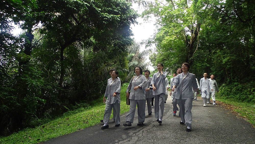 交流至下午2點結束,同學們個個聽得意猶未盡,從Pireer老師分享中明白了修行與生活的結合,都是要從一步一腳印開始的,沒有捷徑,它是實實在在的。彭師婷分享到,從今天的行程下來,發現不一定要榮華富貴才會快樂,原來快樂可以很簡單。在一個小小的山丘上,老師帶著同學們唱著一首首大師創作的人間音緣,就有如此的快樂。