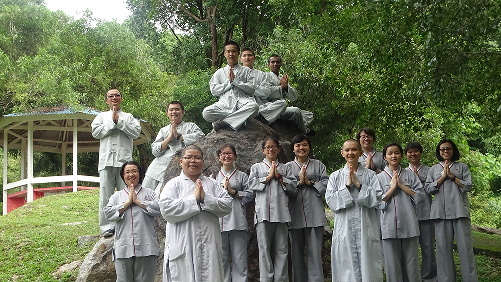 。10月17日剛好是本年度新生滿一個月,妙豪法師和如音法師亦帶同學一行16人來此交流,並教唱“佛在汝心”和“山水妙路”,展現人間佛教與自然結合的教學模式。