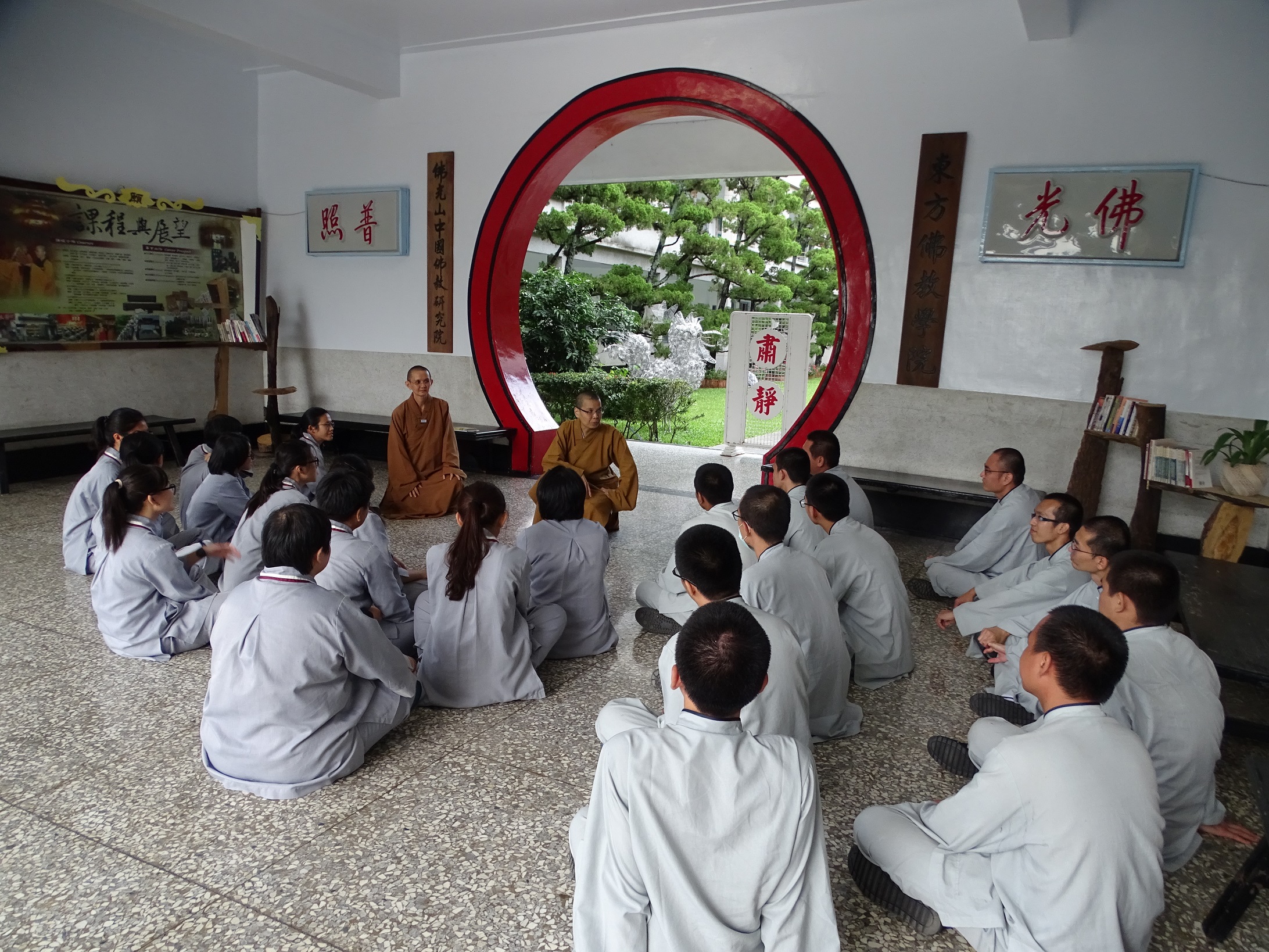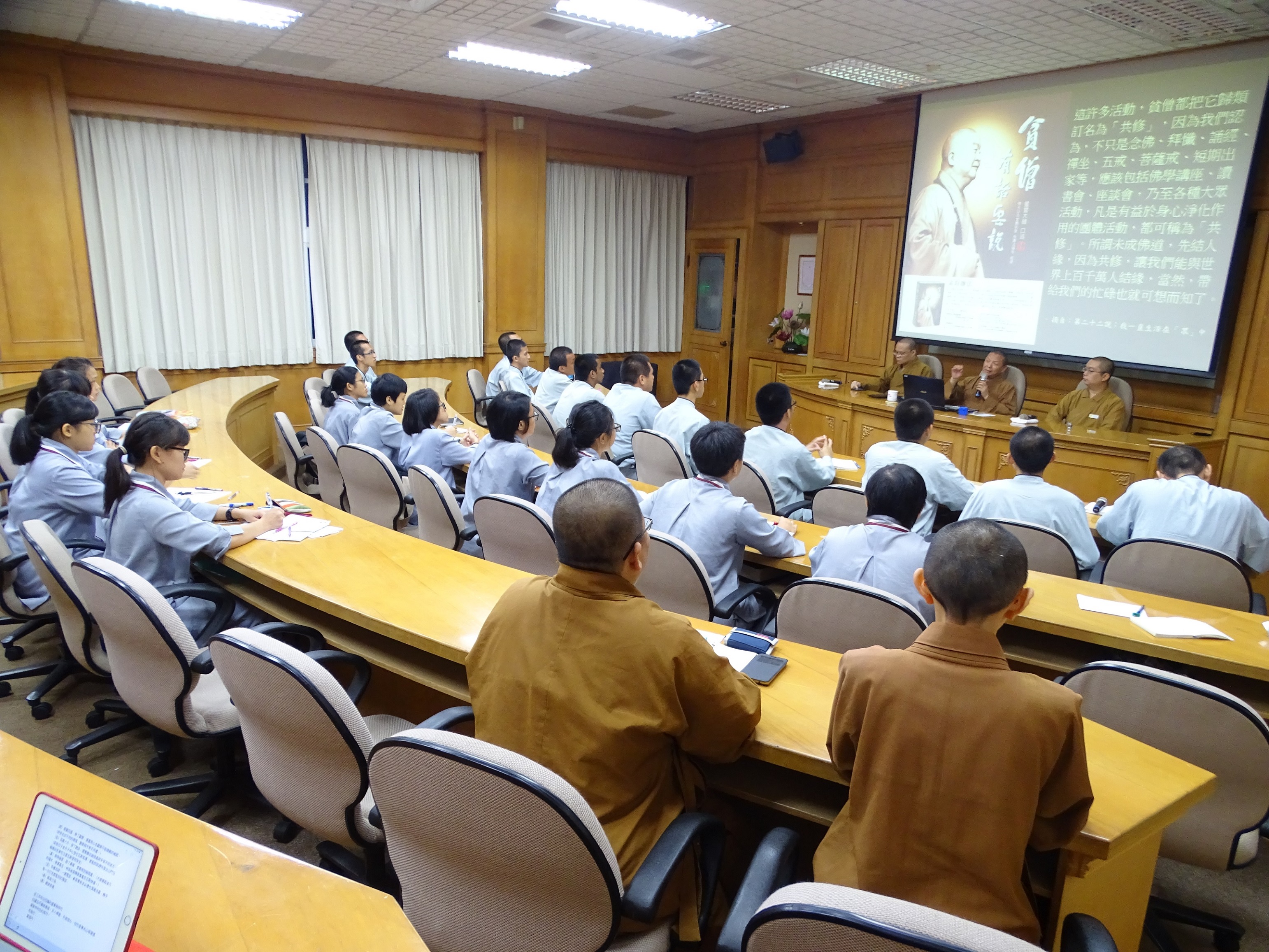 如果佛光山是一個時鐘,那麼都監院就是時間的輪軸,是整個佛光山的核心單位。佛光山都監院院長慧傳法師與其行政書記團隊們也向同學們介紹都監院在佛光山扮演的角色及其工作內容。慧傳院長提醒同學們要看佛光山的內涵而不是表面,更要跟進佛光山的變化。