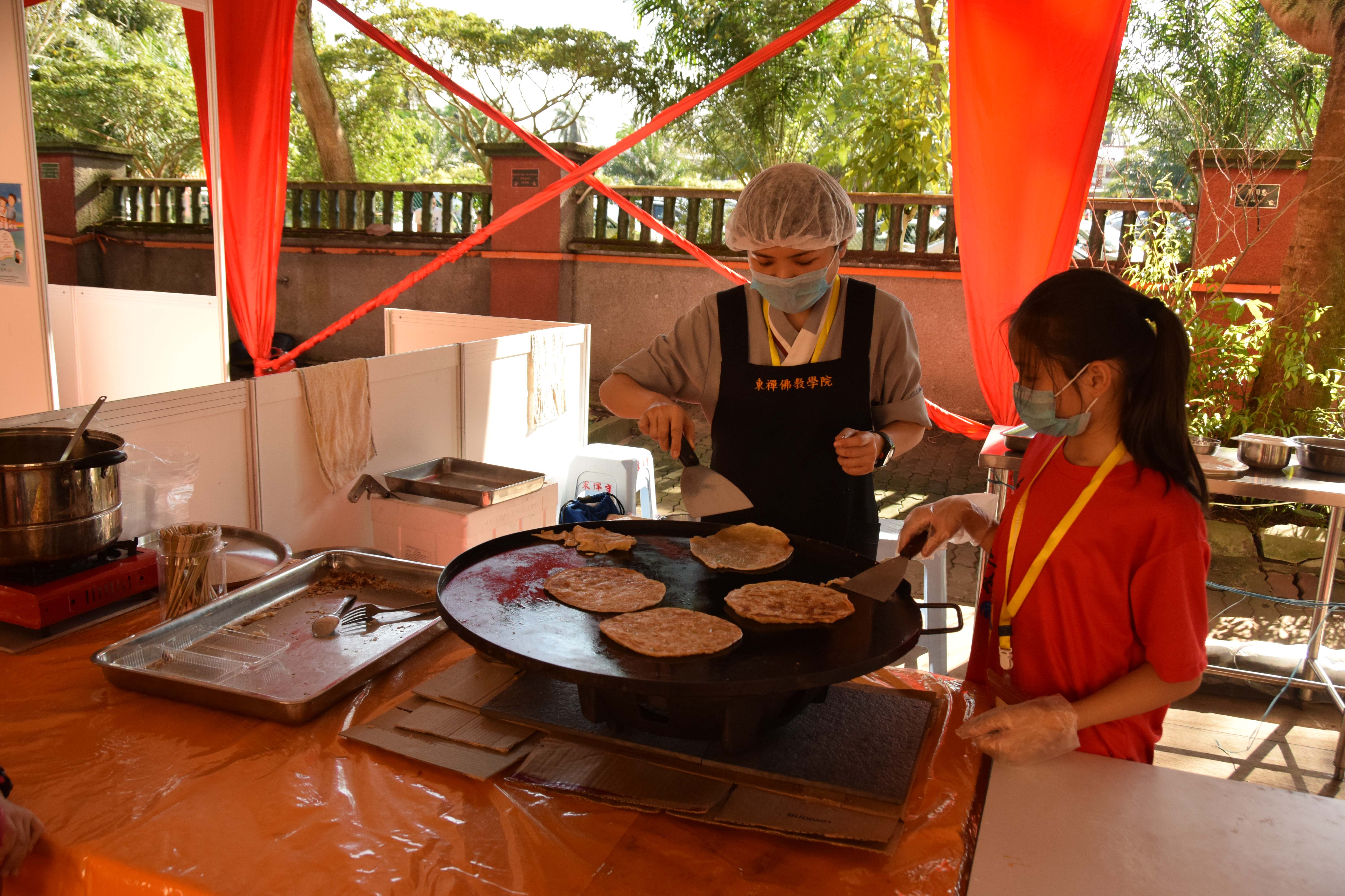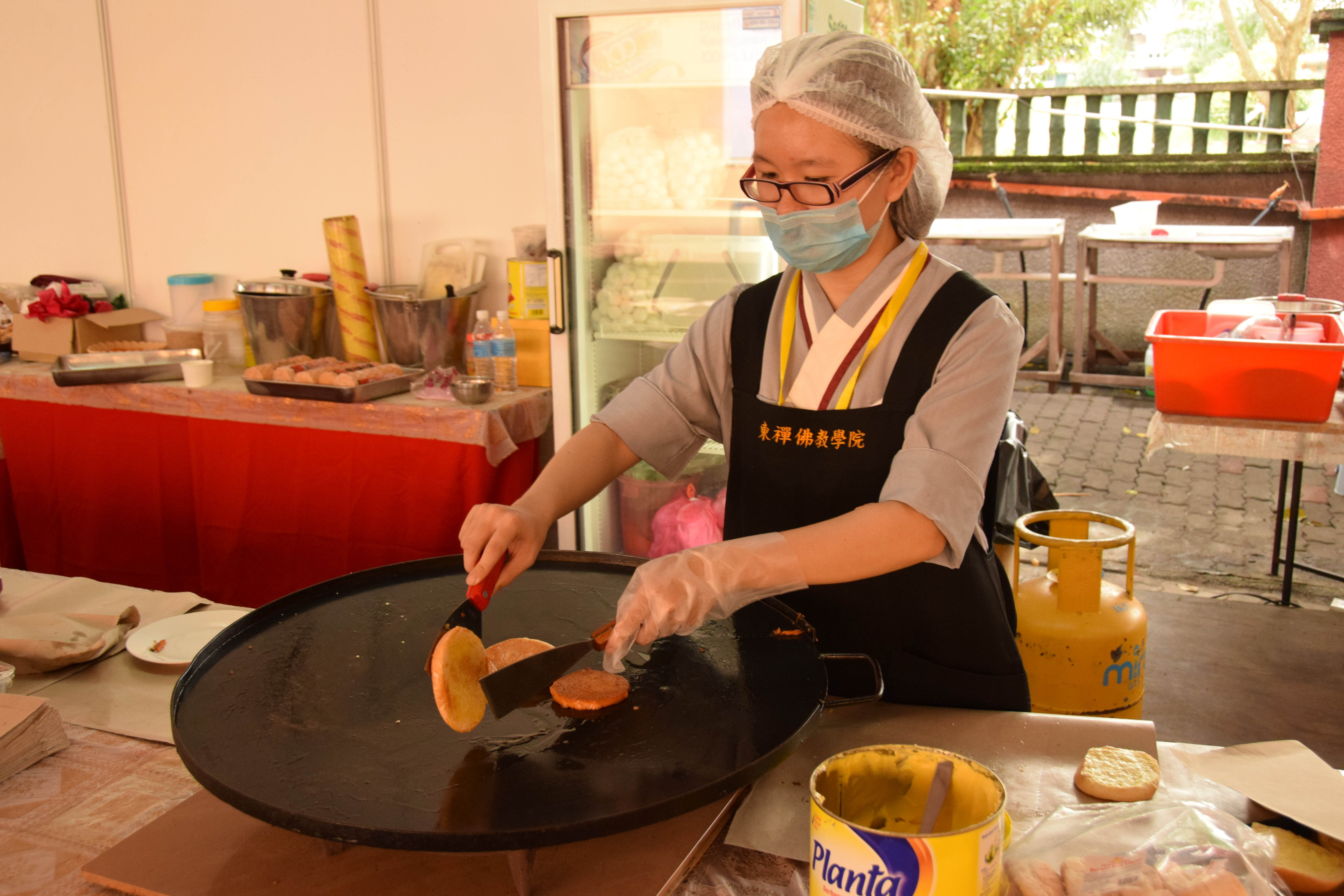 在食尚街,考的則是我們的應變能力。在有限的人力下,我們需要在特定時段面對人潮,爲來臨的大衆準備食物。與一般社會上的買賣不同的是,整個過程,我們可以有彈性地應對每個來訪的“客人”。我記得有一天夜裡,來了一位老奶奶。老奶奶一見我便說:我一個人住,都沒人理會我有沒有東西吃。當下,我看見老奶奶的寂寞。不假思索,便爲老奶奶準備食物。把食物遞給老奶奶的那一刻,我看見,老奶奶發自內心地笑容。從中,體驗了大師“讓每個來訪佛光山的信眾得到溫飽”的理念。是啊,我們的義賣是結緣,是以慈悲爲根本,並非以利益爲目的。食尚街給予我的是:智慧與慈悲永遠比利益來得重要。