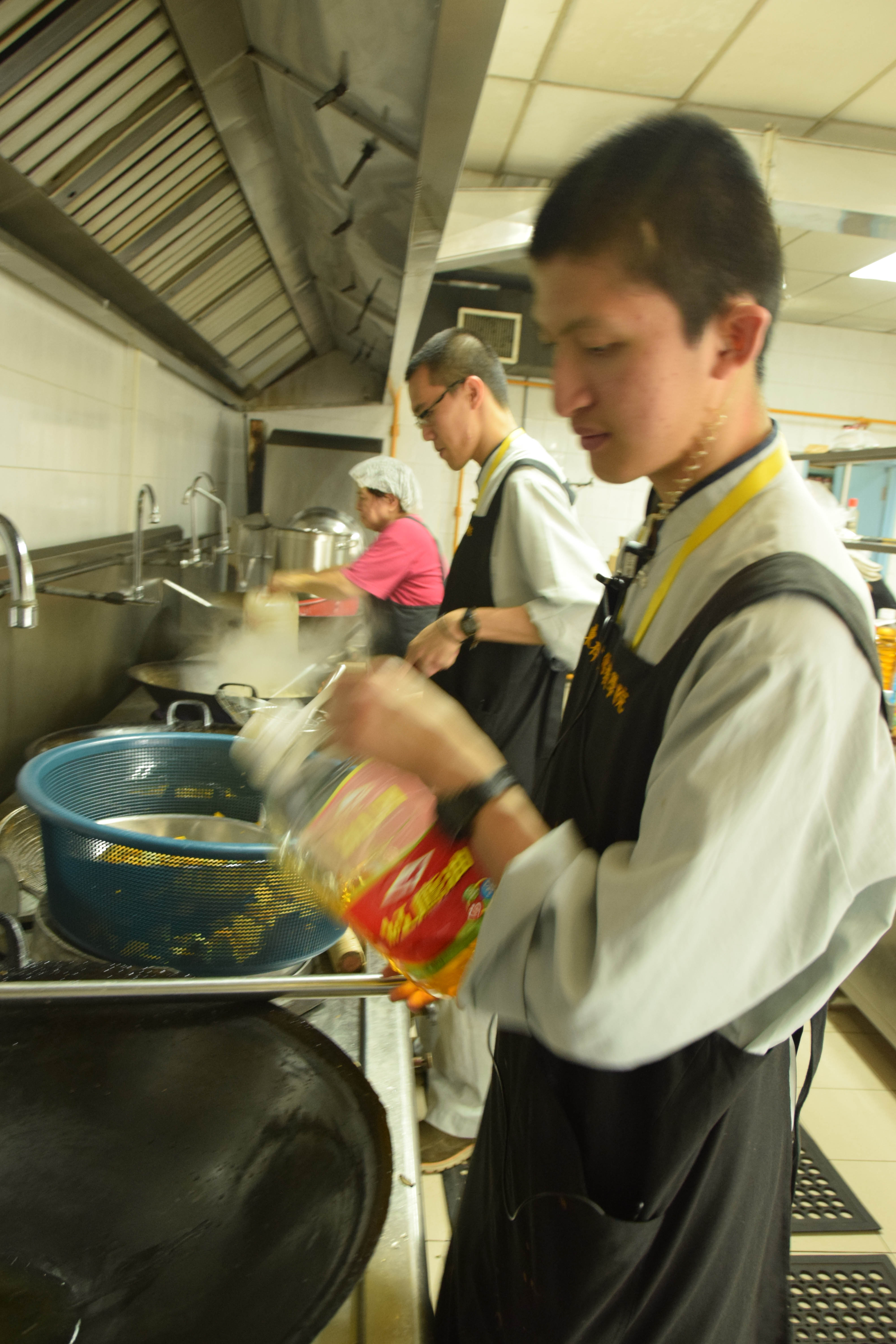 整個新春的氣氛和節奏是又緊張又快。起初我不會煮,所以大寮的老菩薩不讓我下廚,但多謝如音法師一再的製造機會給我加上其他師姐的幫忙最後讓我在這十六天裡學會了義買所需要賣的炒麵,飯和米粉。乃至於最後,那大寮的老菩薩將整個大寮交給我全全管理。就這樣在大寮期間,無論是自己或者是名聲我覺得自己都做到名聲天曉,算得上是今年一個很好的開始。