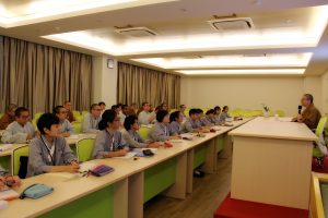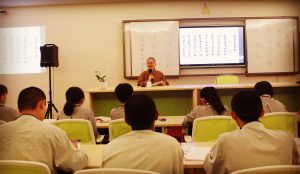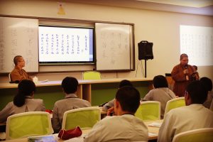 如常法師播放佛陀紀念館2011開館以來,以「文藝化、電影化、人間化、國際化」為發展目標的各項活動,讓即將要前往佛館參學的同學興奮不已,也更深入瞭解星雲大師對佛光山未來50年的願景。