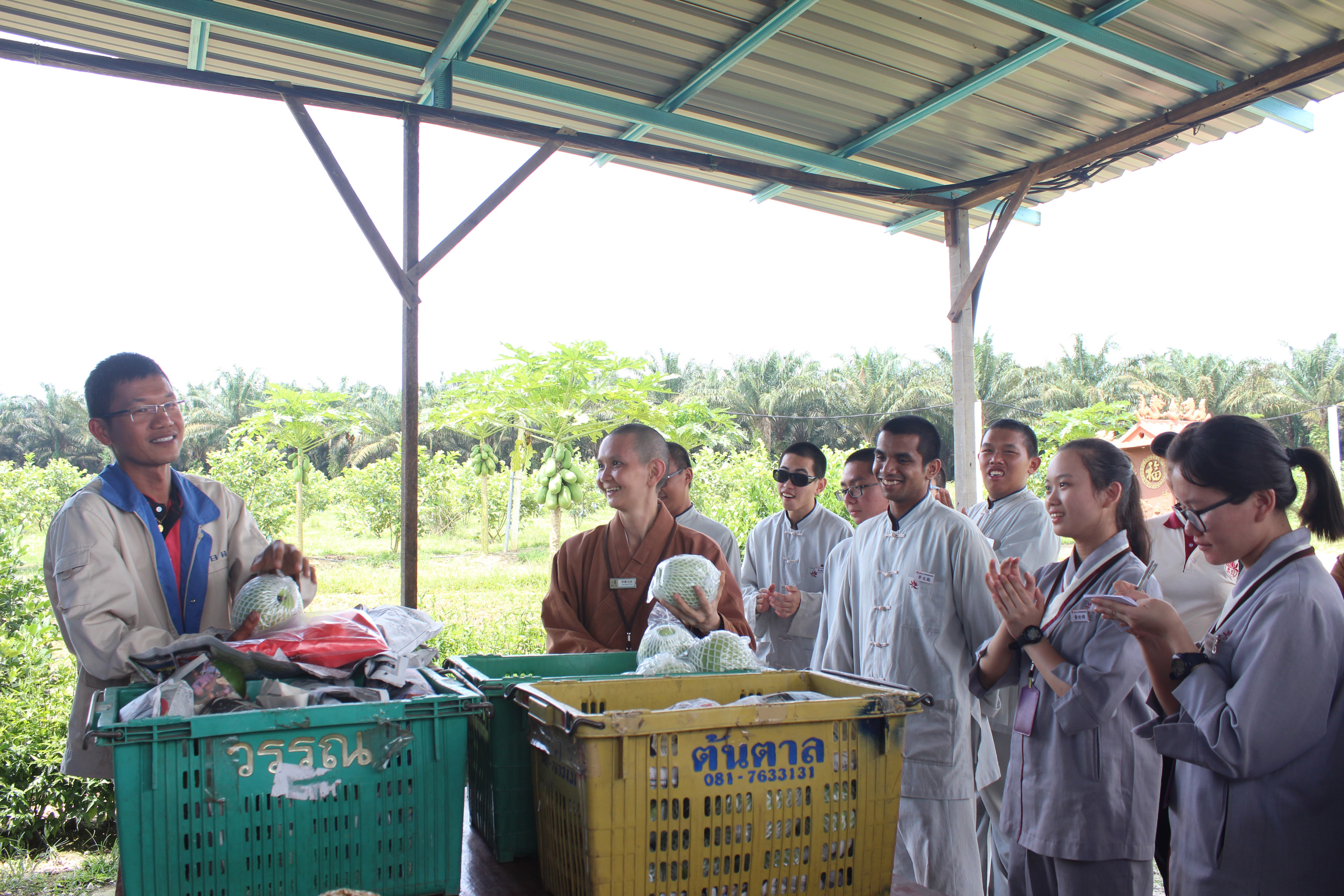 開學後第一天,適逢放香日,道場特為同學安排戶外參學,地點是柔佛郊外新邦農場,一處1萬英畝大的種植場。途經橡膠園、鳳梨園、玉蜀黍、蜜蜂養殖場、巴樂園等,看到工人們勞作的辛苦,學生莊蕙娜表示,「以為辦活動很辛苦,沒想到他們比我們更辛苦,真正感受到能就讀佛學院有多幸福,也更明白珍惜食物的重要性,並領悟到『計功多少,量比來處』食存五觀的意義。」