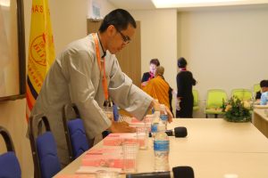 除了世界理事會之外,新馬寺也在這個歡喜的日子落成開光,可謂雙喜臨門。而同學們在此次会议中主要負責理事會議事組工作,有場地布置,电脑记录、幕控ppt、音控、司钟、计时、录音及講師茶水準備。其次,同學也參與迎宾晚宴的表演、場地善后與機動的工作。對于初來咋到的同學們馬上支援如此重大的會議,真的是非常大的挑戰,所幸大家都是為佛教而來,各自都有不同的體會。