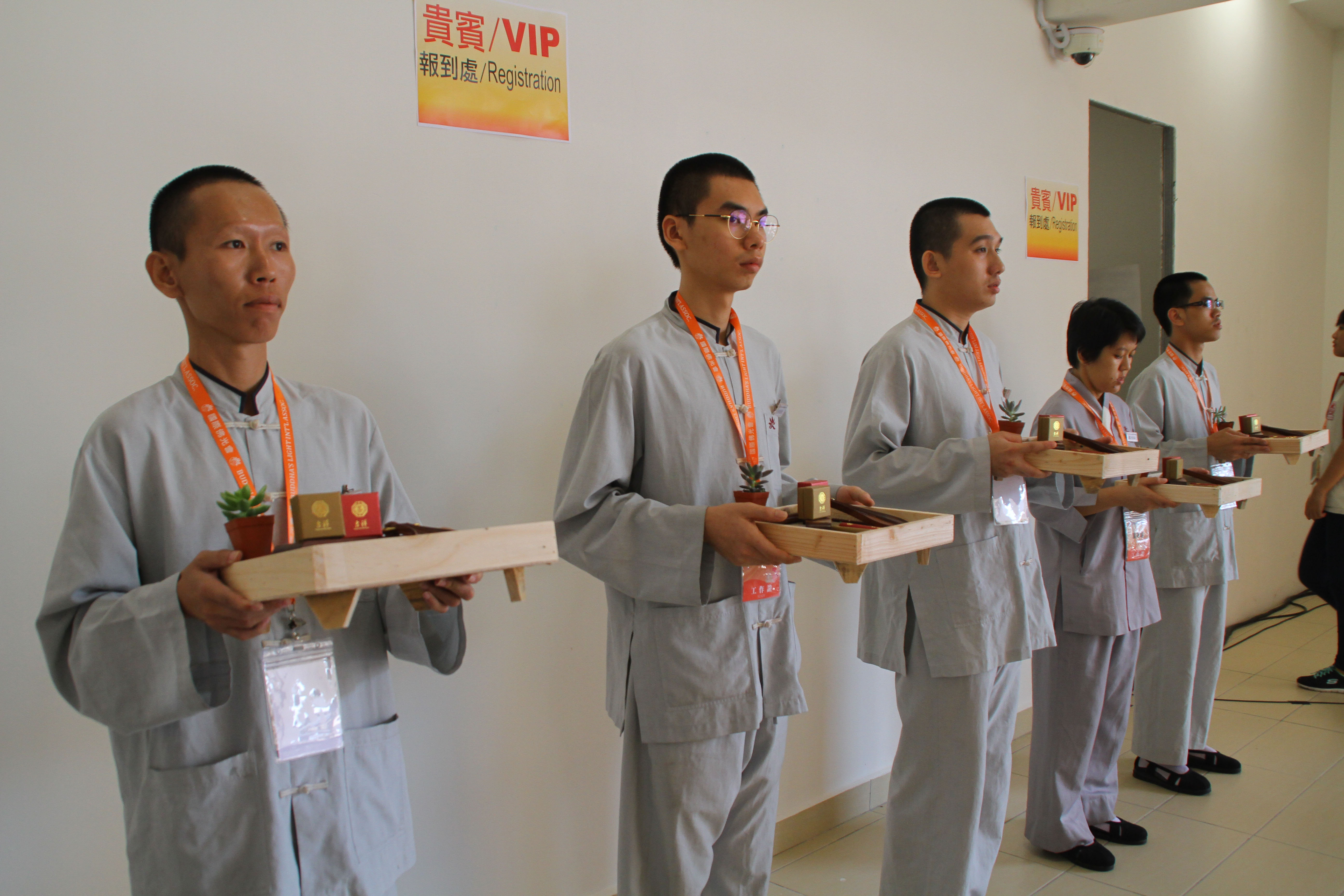 除了世界理事會之外,新馬寺也在這個歡喜的日子落成開光,可謂雙喜臨門。而同學們在此次会议中主要負責理事會議事組工作,有場地布置,电脑记录、幕控ppt、音控、司钟、计时、录音及講師茶水準備。其次,同學也參與迎宾晚宴的表演、場地善后與機動的工作。對于初來咋到的同學們馬上支援如此重大的會議,真的是非常大的挑戰,所幸大家都是為佛教而來,各自都有不同的體會。