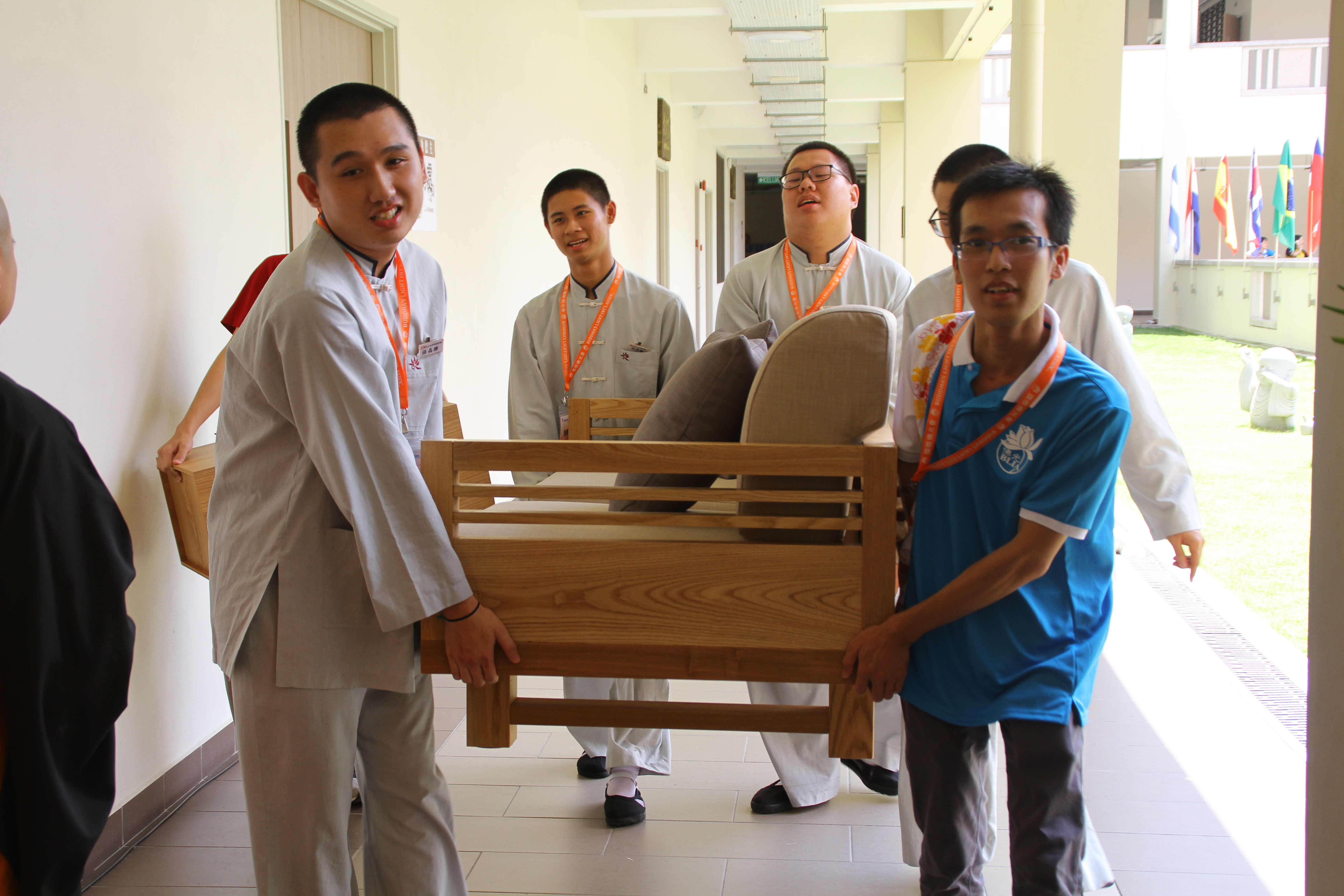 國際佛光會世界理事會首次在大馬舉辦,大家非常的興奮與期待,開學不到一個星期的東禪佛教學院新生10月1日在妙豪老師和學長們的的帶領下18人戰戰競競的前往新馬寺支援世界理事會。