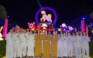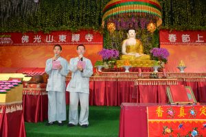 遼闊的夜空,一道道燦爛絢麗的煙花在東禪的上空中綻放,耀眼奪目的花燈,吸引信眾與遊客駐足拍照,正當大家在一片喜氣洋洋歡樂中與家人一起過年的當兒,東禪佛教學院的學生卻選擇了放下以往在家過年的方式,以服務和奉獻的精神在東禪寺與大眾廣結善緣,過一個不一樣的新年。
