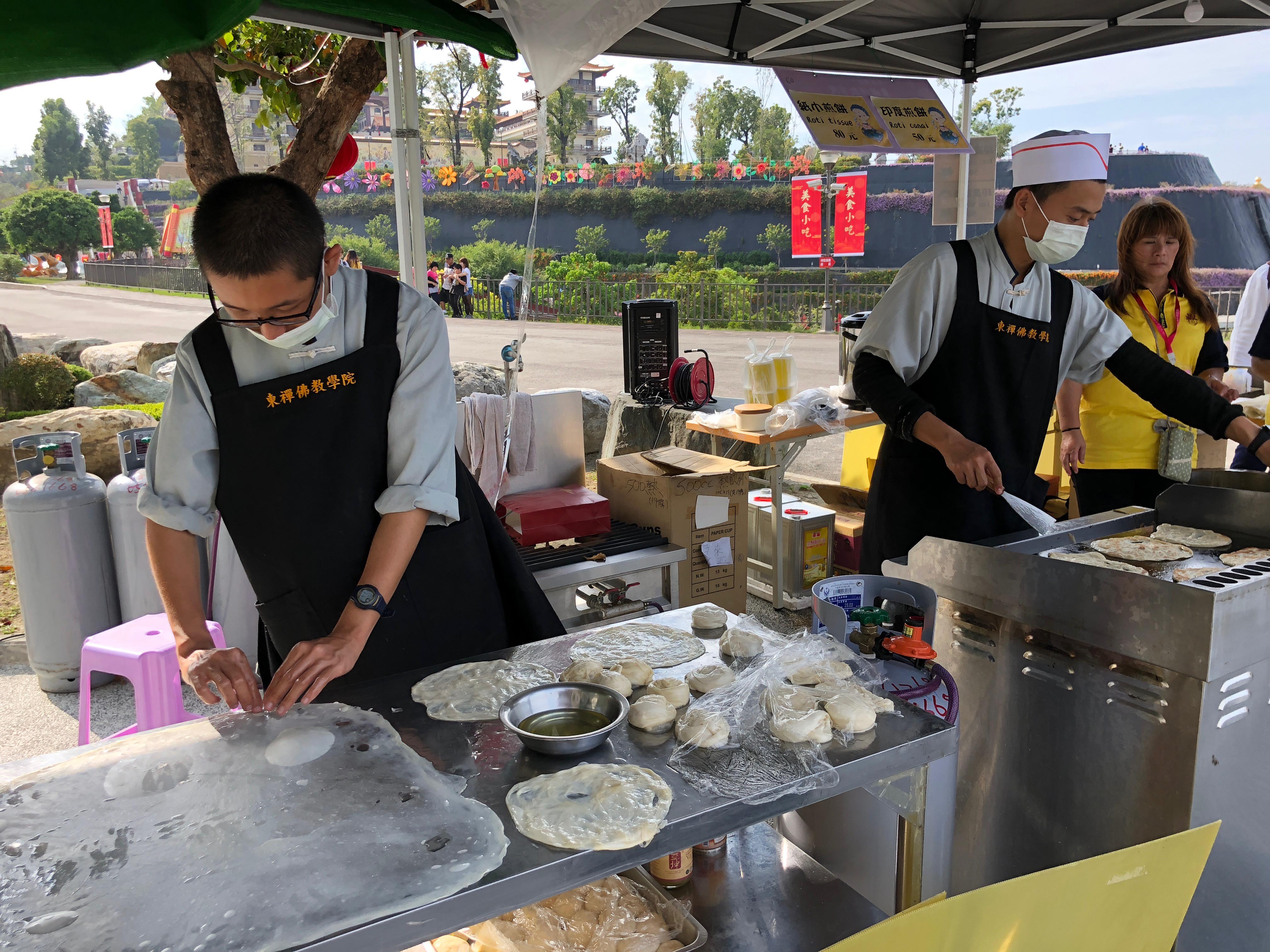 除此之外,更有四位男眾同學被院長遴選派往台灣參加新春義賣,推廣馬來西亞美食-印度煎餅。在東禪的同學們還要在百忙之中參與文化節目表演,每天在上燈法會之前也要上臺帶動大家唱《悉發菩提心》等,在老師與學長們的集體創作之下有如一片欣欣向榮的景象。
