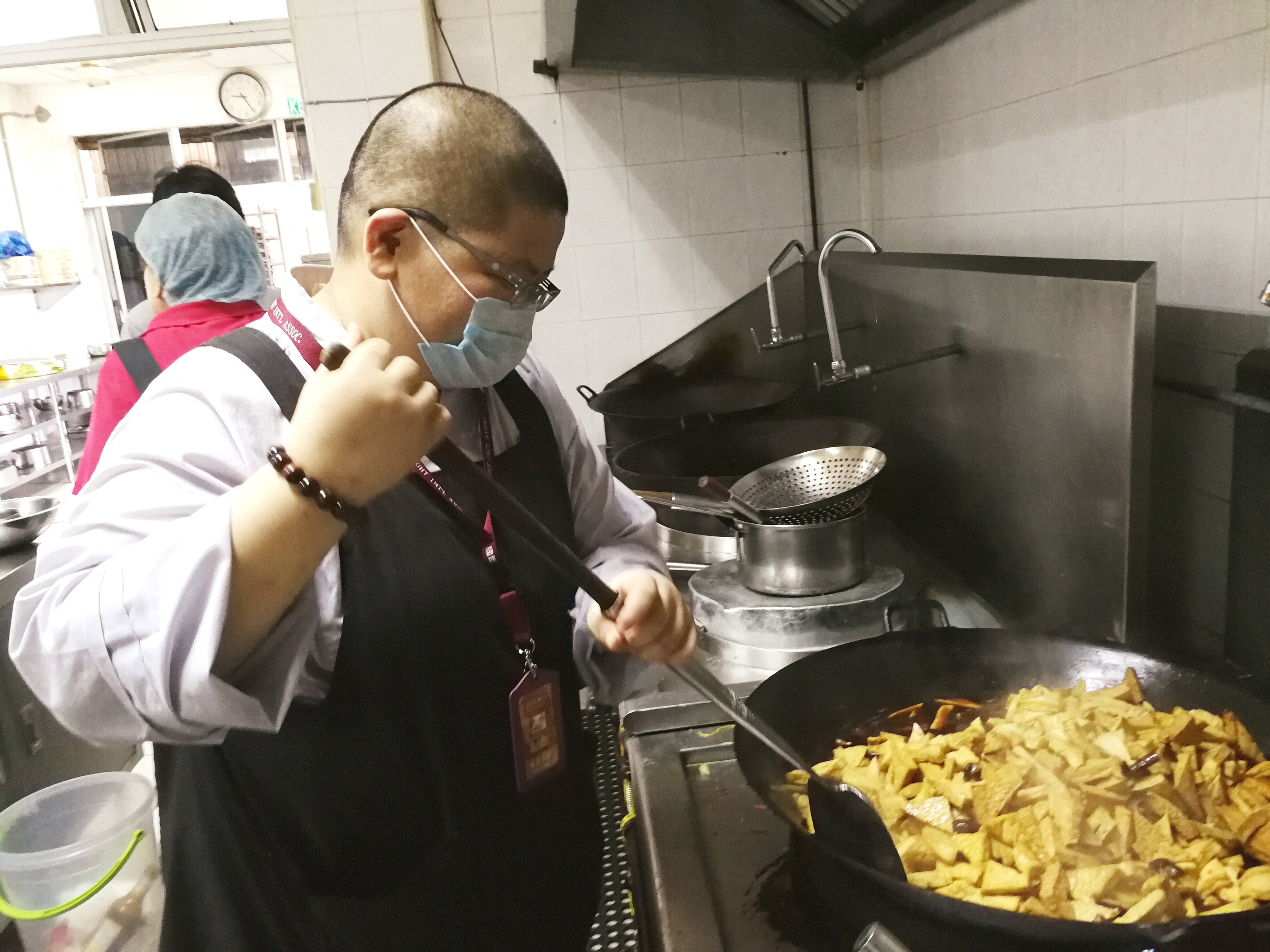 春節義賣,我負責食尚街買包子并兼組長一職,這段期間對我最大的挑戰是耐煩。每天要確定所需物品是否充足,有時還要從第一檔跑到最后一檔,上一秒從冰水中拿飲料,下一秒打開熱爐拿包子,雙手重復的熱賬冷縮,讓我體會什么是隨緣不變的真理,不管外境如何變化,我的心要保持不變。期間媽媽的到來是這個春節最大的驚喜,雖然過后有放假,但能在東禪一起過年也是特別的體驗。