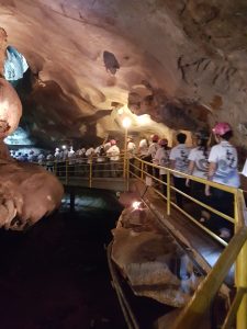 18日午餐后,在怡保禪凈中心的安排下,全日制與周日班同學一起探索了約4億年歷史悠久的山洞—–椰壳洞。妙豪法師帶領大家誦經回向后,在两位導遊的帶領下循着台阶在洞中观赏形态各异的钟乳石,導遊一再强调每一柱钟乳石的形成都经历了数以百万年的漫长岁月,因此教育所有前来参观的游客必须好好珍惜大地的恩泽,不随手破坏这珍贵的自然遗迹。