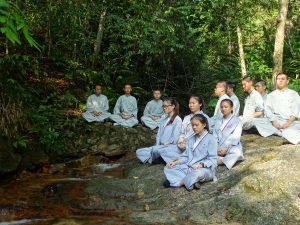 由慧尚法师带领的禅修课,说明禅修并不是坐在那里不知道要做什么,而是用专注呼吸的方式把我们的心安住在一处,调散乱的心。专注呼吸就像让这颗心有个家,如果没有这个家(所缘),心就会像猴子一样,到处乱跑乱跳(打妄想)。打妄想是不善心,会招感不善业,将来会投胎到不善道去,而觉知呼吸是在造善业,所以老师勉励大家要常常觉知呼吸,让它成为培养正念的一种好习惯。