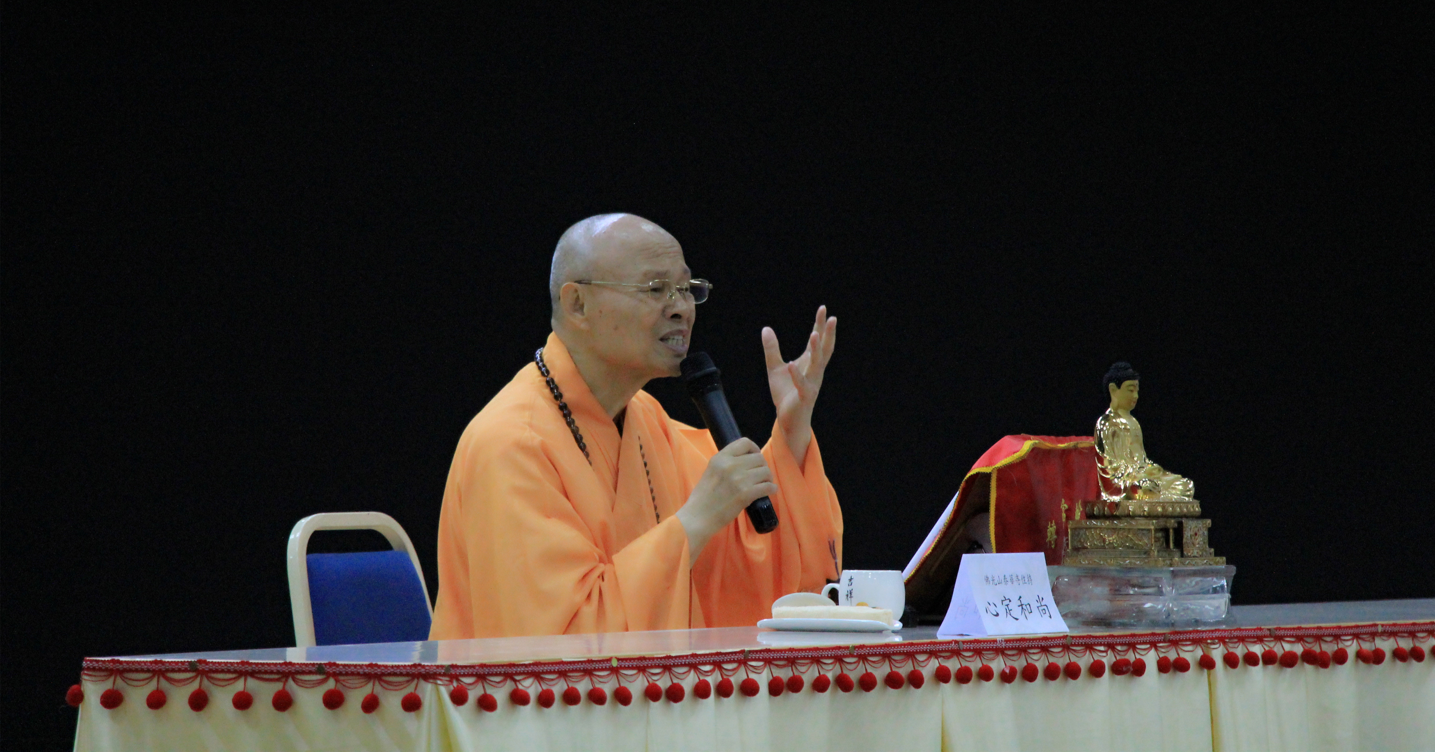 心定和尚談到「佛教與因緣 」時說明因緣法是佛教的根本思想,是兩千五百年前世尊以八正道的正思維發現的而不是世尊創造的。因緣法則是不變的就如水加了糖就是甜的,加了鹽就鹹,加了檸檬就變酸。其他宗教只要信就可以了但佛教不只信還要去實踐及體證。因此我們不可以把因緣法當成學術來研究而是去實踐,我們知道善有善報,惡有惡報,那我們就往善的去做,而不做壞的,那就是正確的人生觀,久了我們的人格,道德就會提升,圓滿之時就是達到究竟的佛果。