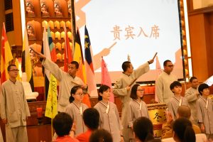 經歷9個月的學習,2018學年度佛光山東禪佛教學院結業典禮6月8日在佛光山東禪寺大雄寶殿舉行,約800人出席觀禮。典禮上,同學們在三寶面前立下誓言,「不忘初心,做佛光人,為教爭光」。