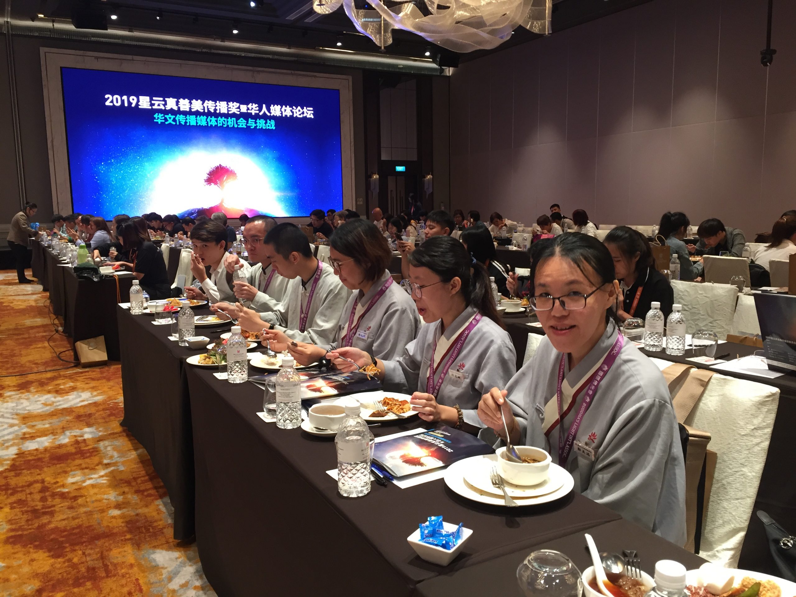 星雲真善美傳播頒獎典禮暨華人媒體論壇,11月24日首次在新加坡烏節路酒店舉行。現場雲集了多達300多位來自馬來西亞、台灣、新加坡等媒體工作者,與會學者一同探討作爲傳統媒體人的使命與理念。在院長覺誠法師的關心下,東禪佛教學院5位同學有幸參與了此次高端媒體論壇,真是六根大開。