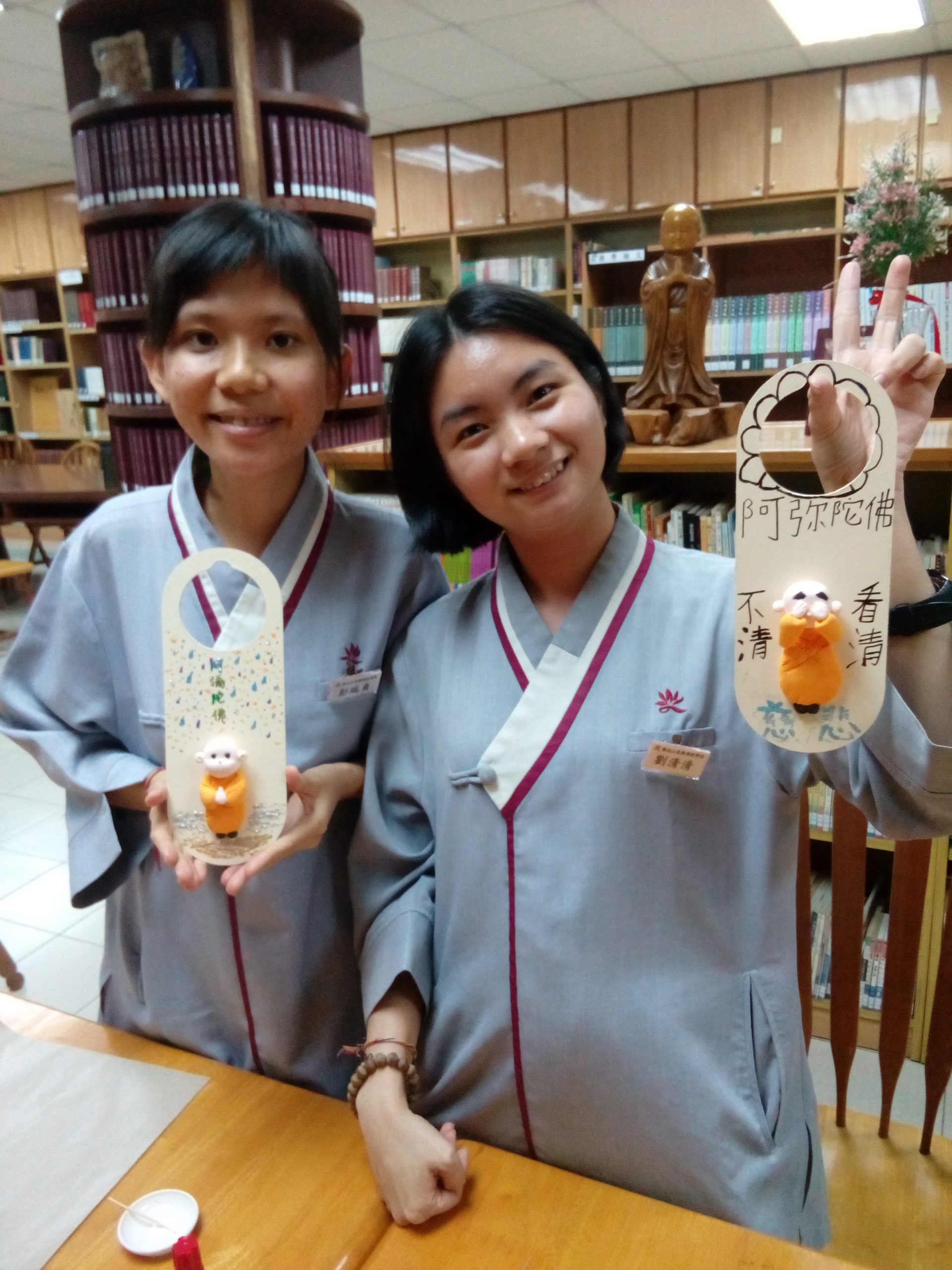 另外,老師們也安排我們進行威儀訓練,短短的幾天,我們學會了正確的禮佛姿勢、海青穿法,七支坐法及過堂的禮儀。我們每時每刻都在提醒自己要端身正意、無論做任何事情,都要提起正念。感謝老師們細心、耐心、用心的教導,還有院長送的小禮物,給我們帶來了歡喜與快樂。