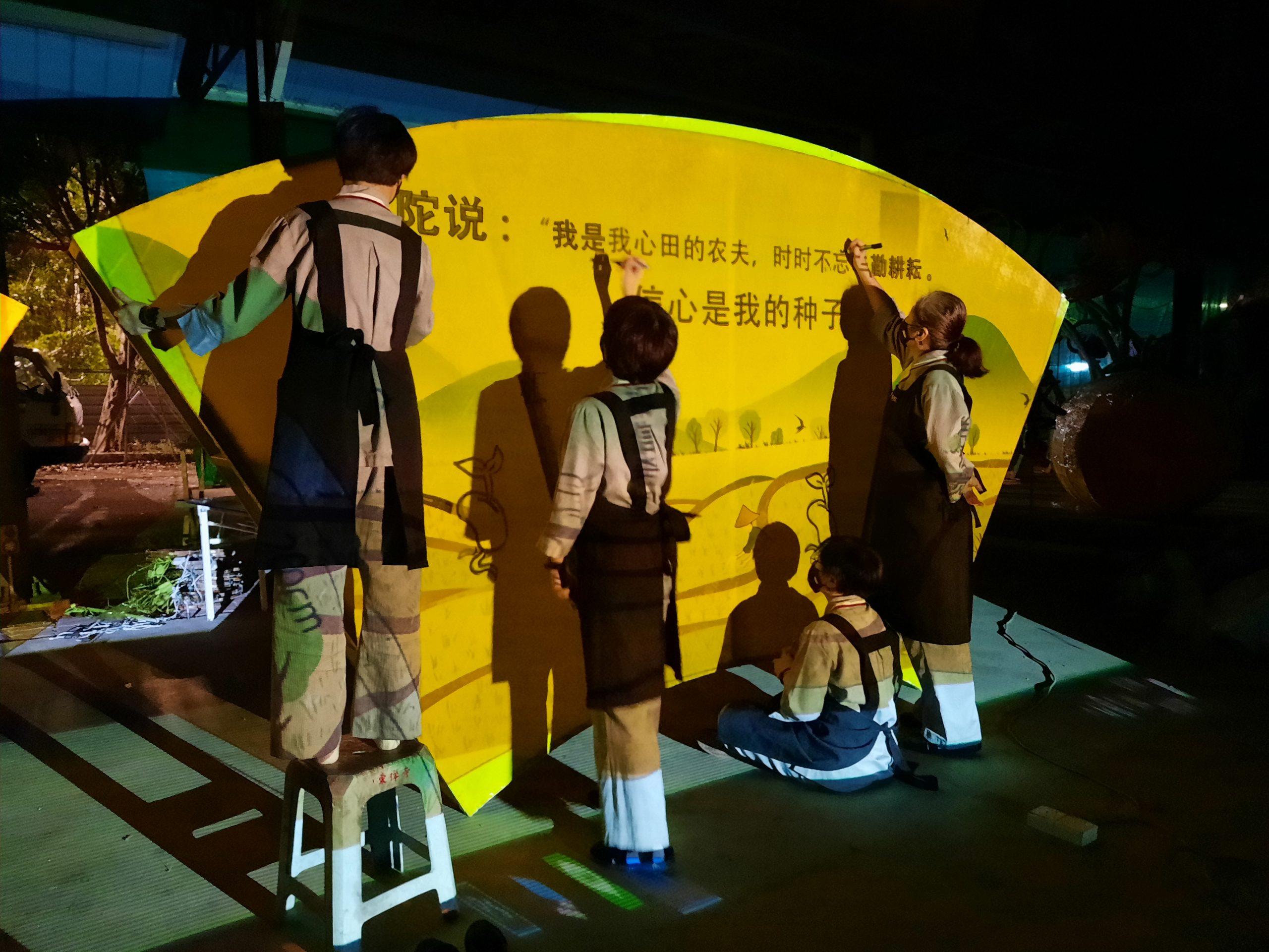 東禪佛教學院同學,近年都會參與東禪寺平安燈會的一部分籌備工作。今年配合牛年的到來,同學們學習畫布畫,將佛典故事「耕耘心田」的內容描繪在布畫上。