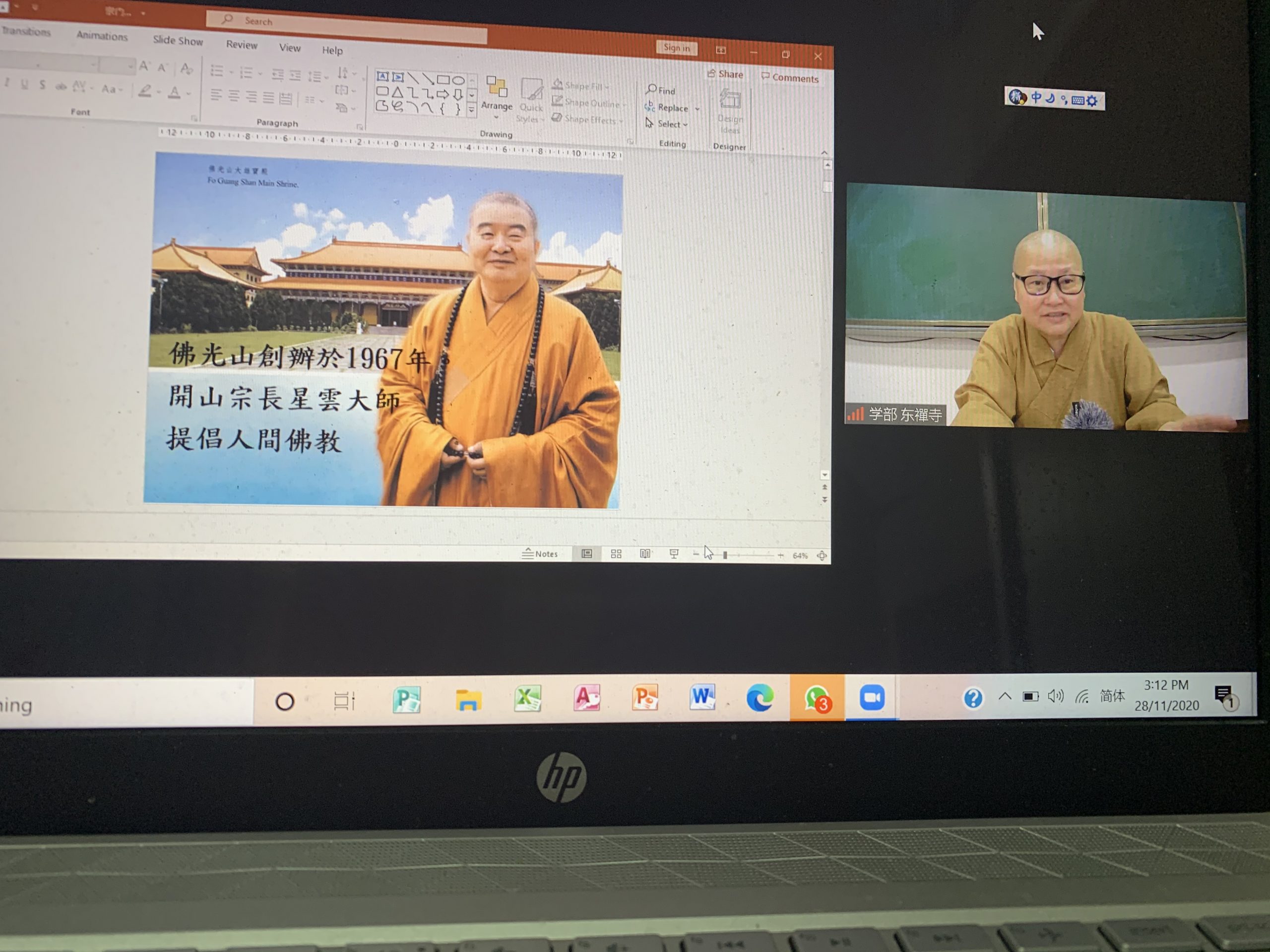 有燈法師主講《生活與修行》,法師鼓勵學員以惠能大師的〈無相頌〉作為日常生活修行的依據,鼓勵學員平日實踐三好四給的精神,生活中的一言一行都是修行的體現。