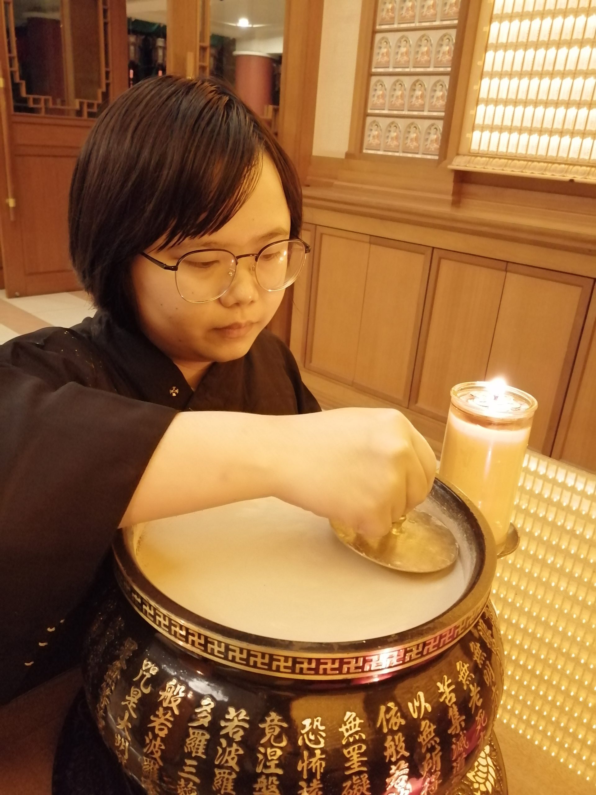 經過各類事物考驗,我發現自己似能接受「月亮不一定要圓滿,殘缺也是一種美麗」的概念。當遇到辦不到的情況,找人一起解決,並接受自己的不完美。 對於音感來說,自覺唱聲很大,卻唱得不好聽。就在一次被開牌當維那(寺院早晚課誦領眾共修),真心慚愧,因為沒有辦法讓大家安心唱誦。當自己跪在佛前,和佛菩薩訴說懺悔,覺得干擾、影響他人的念頭不斷出現,很自責。回寮靜坐時,突然有一個聲音提點我:請教老師。