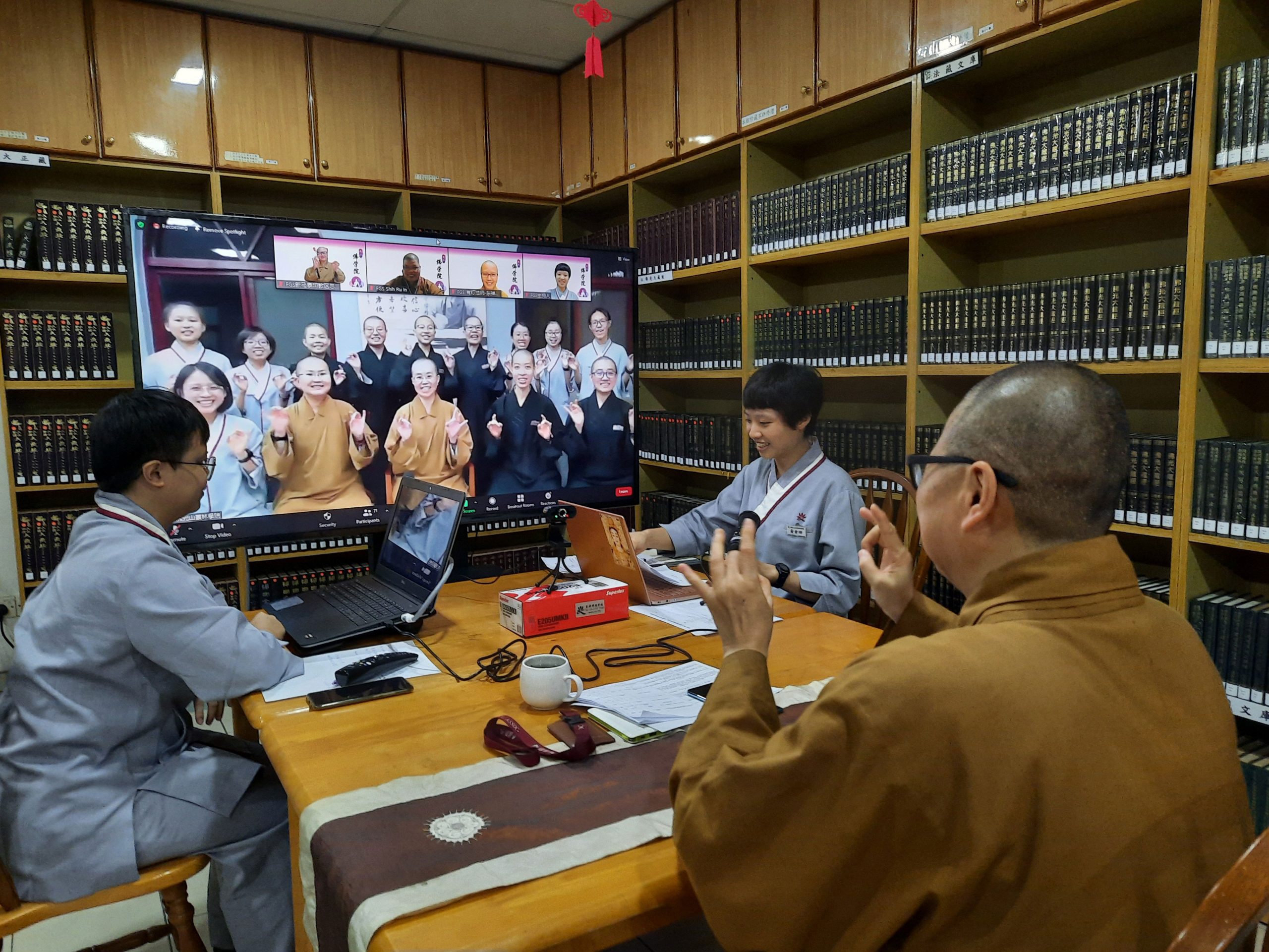 此外,佛光山叢林學院院長妙南法師帶著13名在台灣佛光山叢林學院就讀的馬來西亞籍在家眾與出家眾學生,當晚在雲端與大家見面。