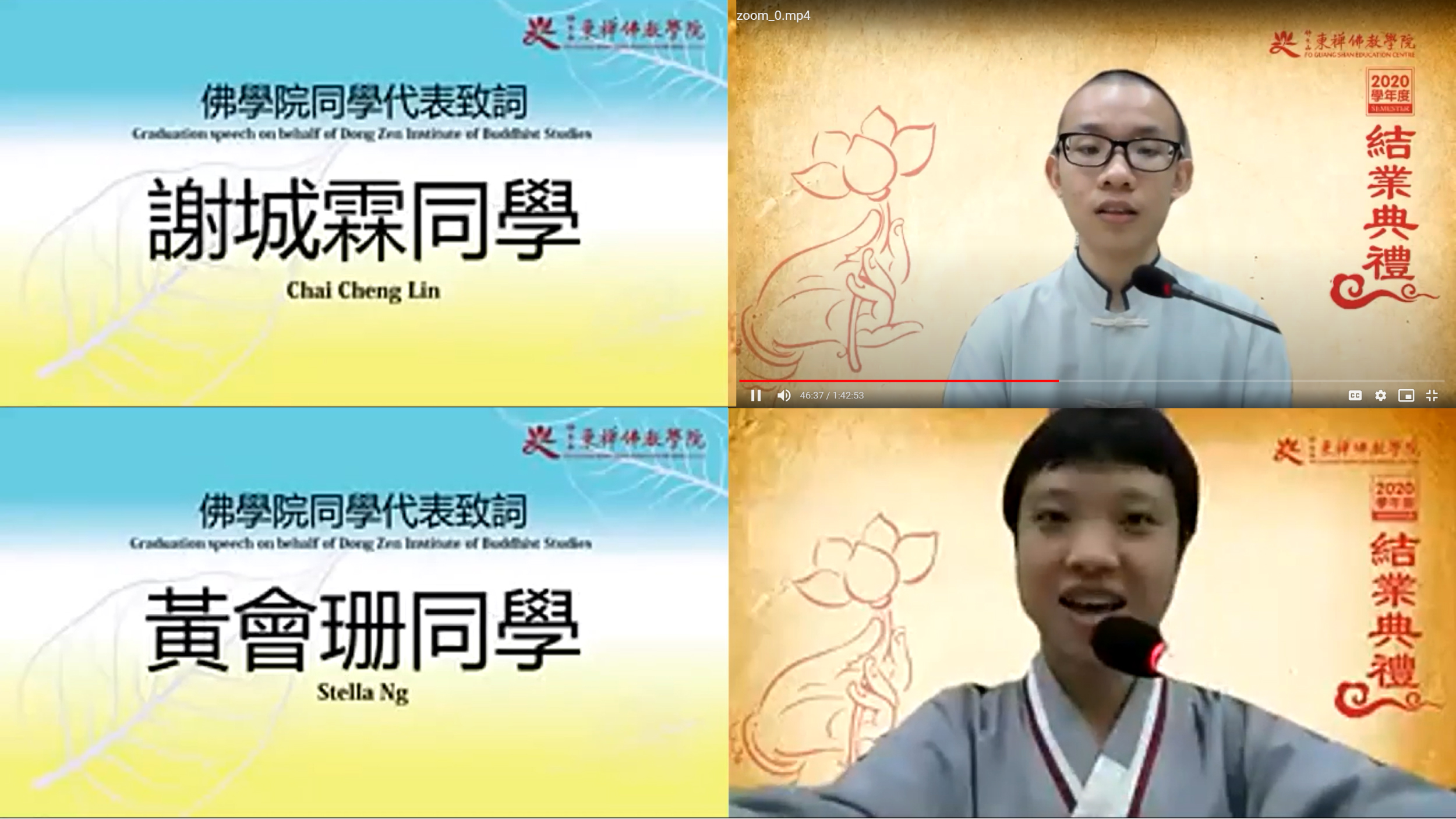 首先我很感謝自己有因緣讀佛學院,我今年19歲,中學畢業後,經適耕莊量師父口中得知東禪佛教學院,於是並發心就讀。在這裡生活過得樸實。疫情期間,我們這一屆少了許多辦活動的機會,但很快的東禪寺利用科技,讓我們學習操作線上工作。