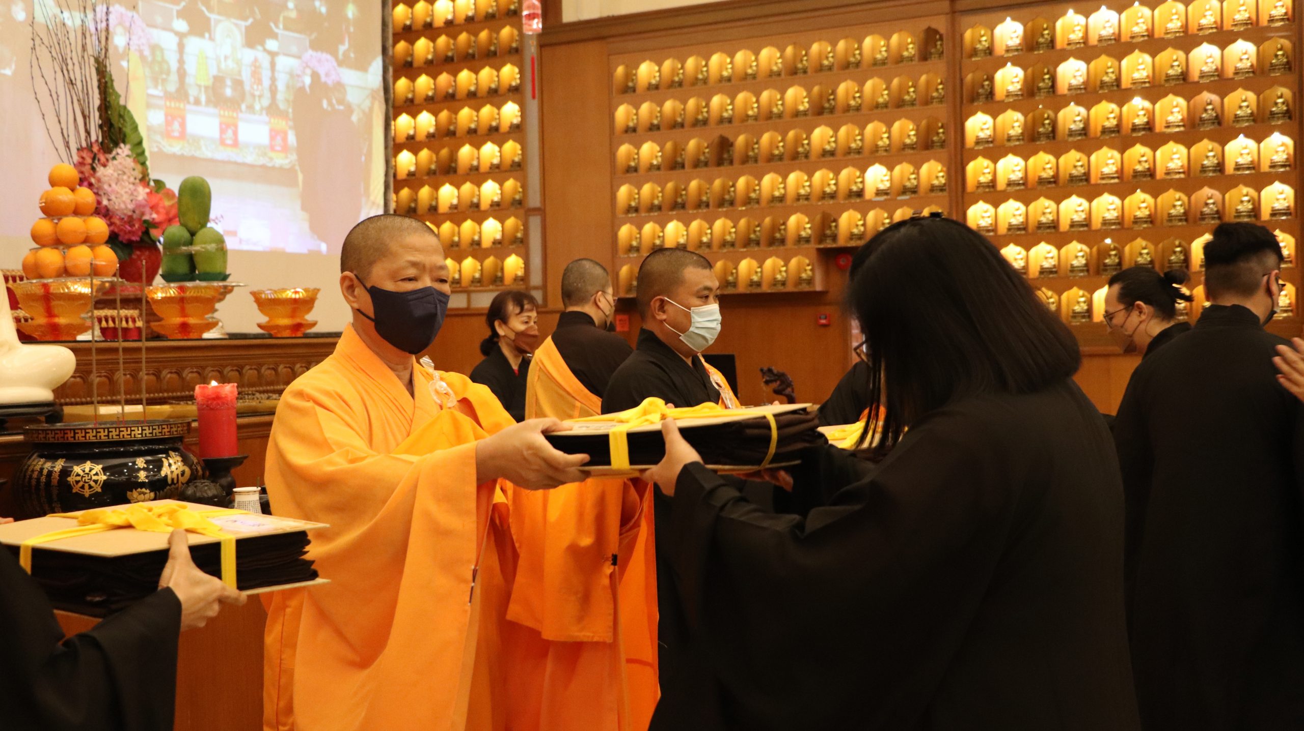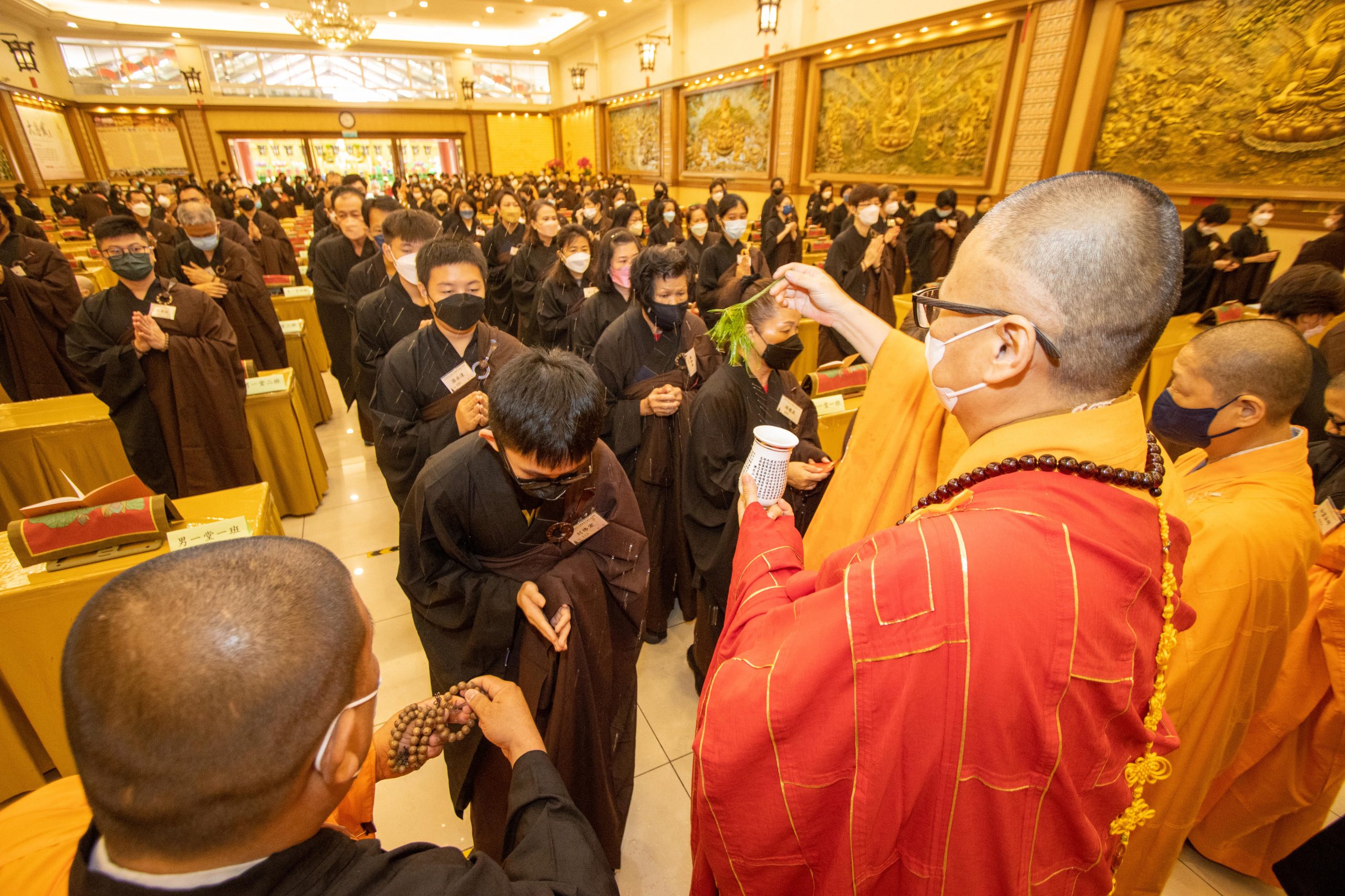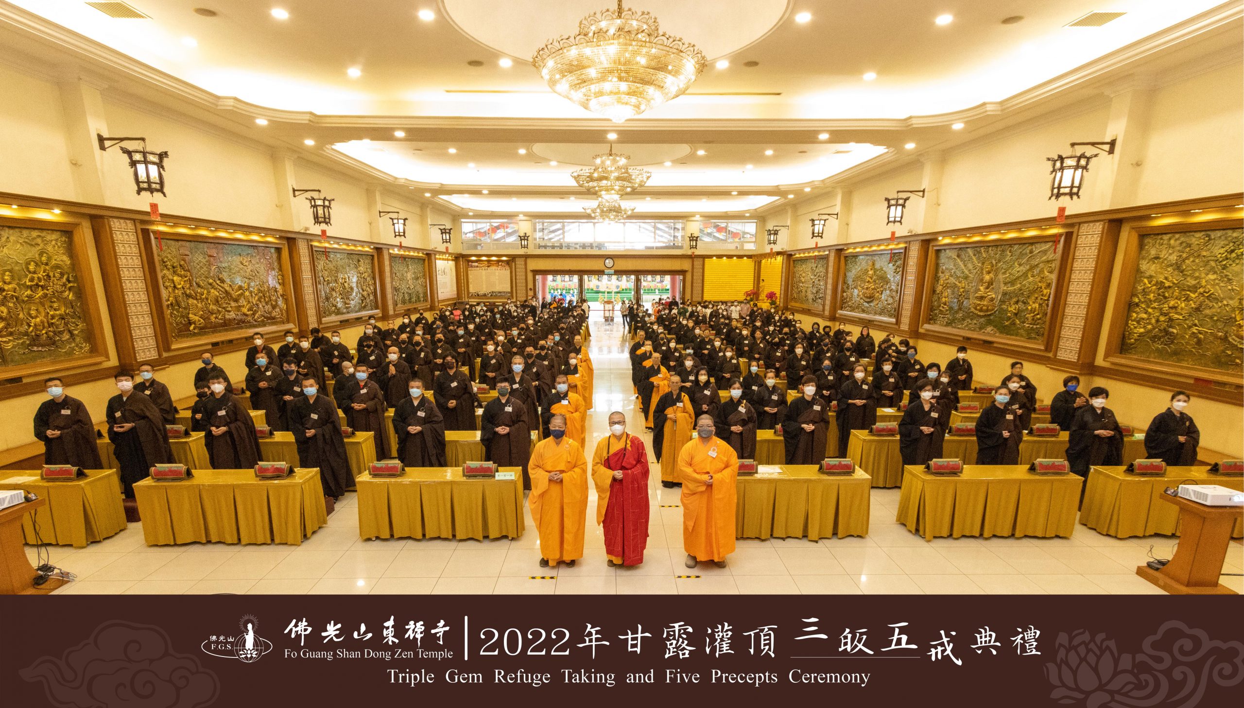 馬來西亞佛光山東禪寺停辦2年多的「甘靈灌頂三皈五戒典禮」,5月8日上午終於在大馬疫情開放後,於大雄寶殿舉行。此次典禮有別以往,由佛光山總本山主辦,聯合全球佛光山各別分院承辦,採用線上線下同步進行。戒會禮請佛光山住持心保和尚、副住持慧昭法師及慧倫法師主持,為303位信眾於三寶前證盟。