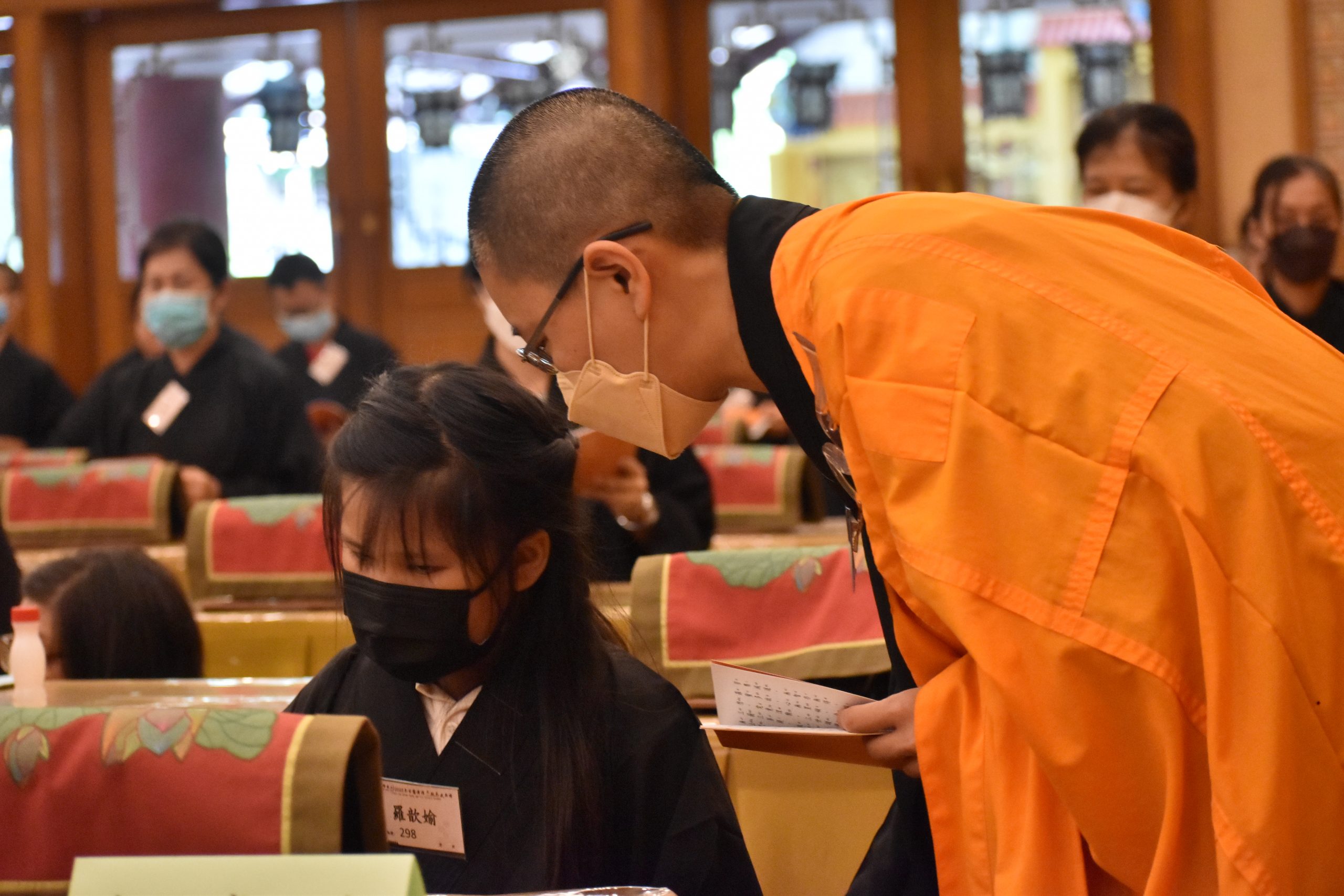 之前曾參與線上皈依,今日更是把握難遭難遇的因緣,親自到東禪寺大雄寶殿求受五戒。令熊校長印象深刻的,不僅是法會的莊嚴,更透過法師們的慈悲開示,瞭解到五戒不只是在佛堂中的講課,更應該要落實到生活上。談及受五戒後的使命,熊校長表示會在學校落實三好運動,不需特意強調是佛法,卻能讓孩子們心中種下「做好事、說好話、存好心」的菩提種子。