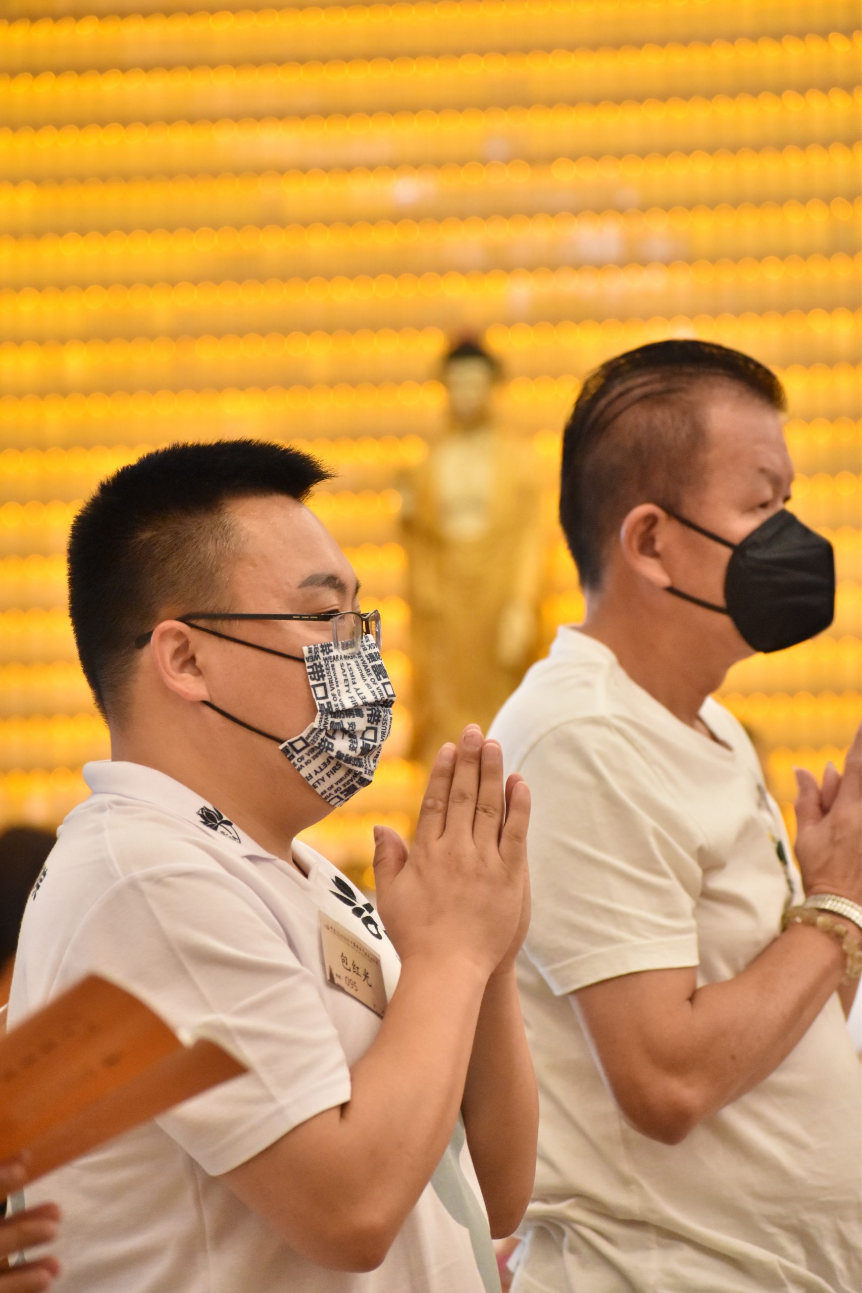 現場參加典禮的人有234位,線上皈依者有69位,年齡最小的2歲,最大78歲;來自馬來西亞、汶萊、印尼、中國、香港等地區,受高等教育者為139位。大雄寶殿裡老、中、青、幼齊聚一堂,在鐘鼓齊鳴、梵音繚繞中,以清淨心虔誠受持三皈五戒,場面殊勝莊嚴,法喜洋溢。