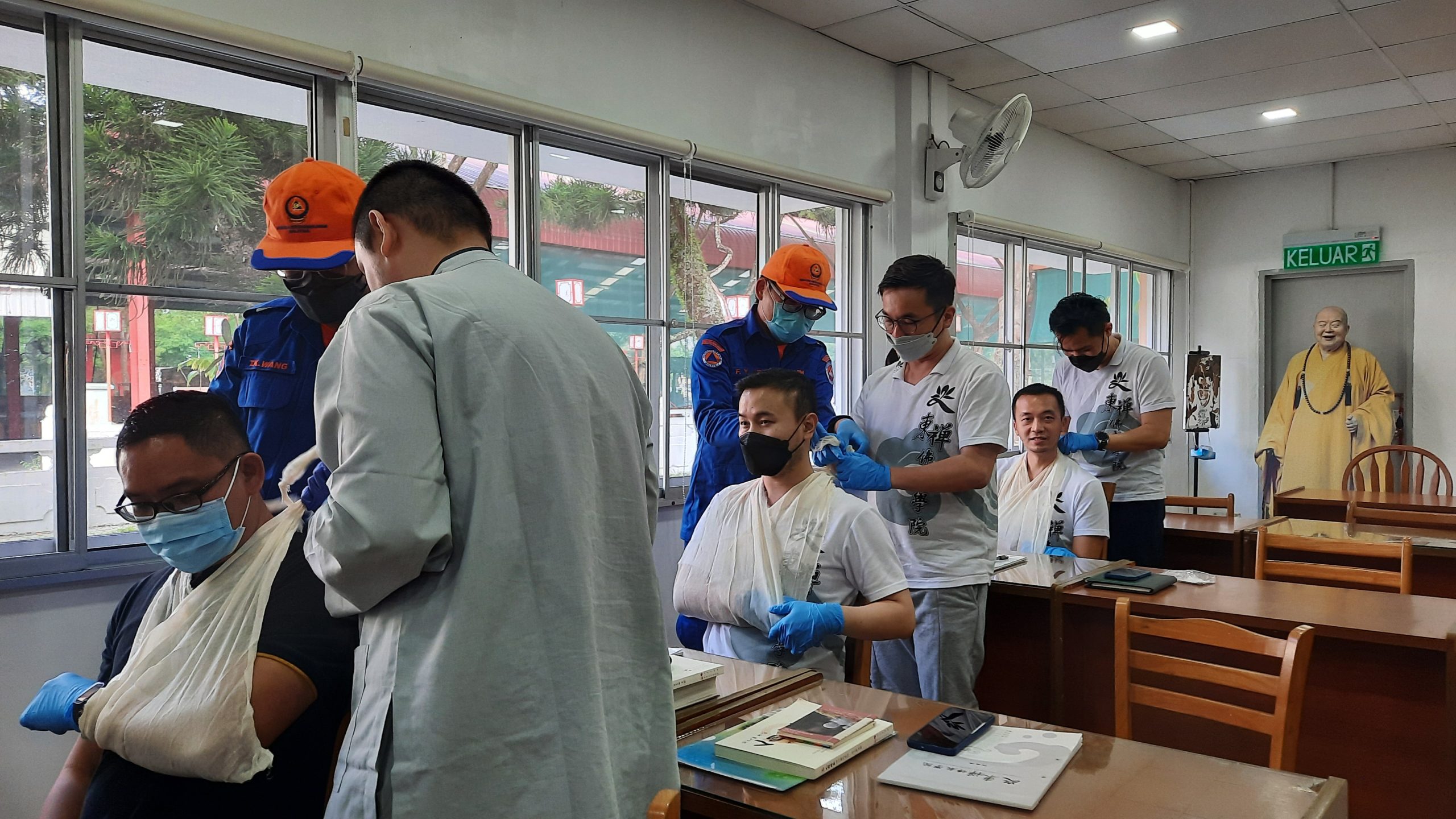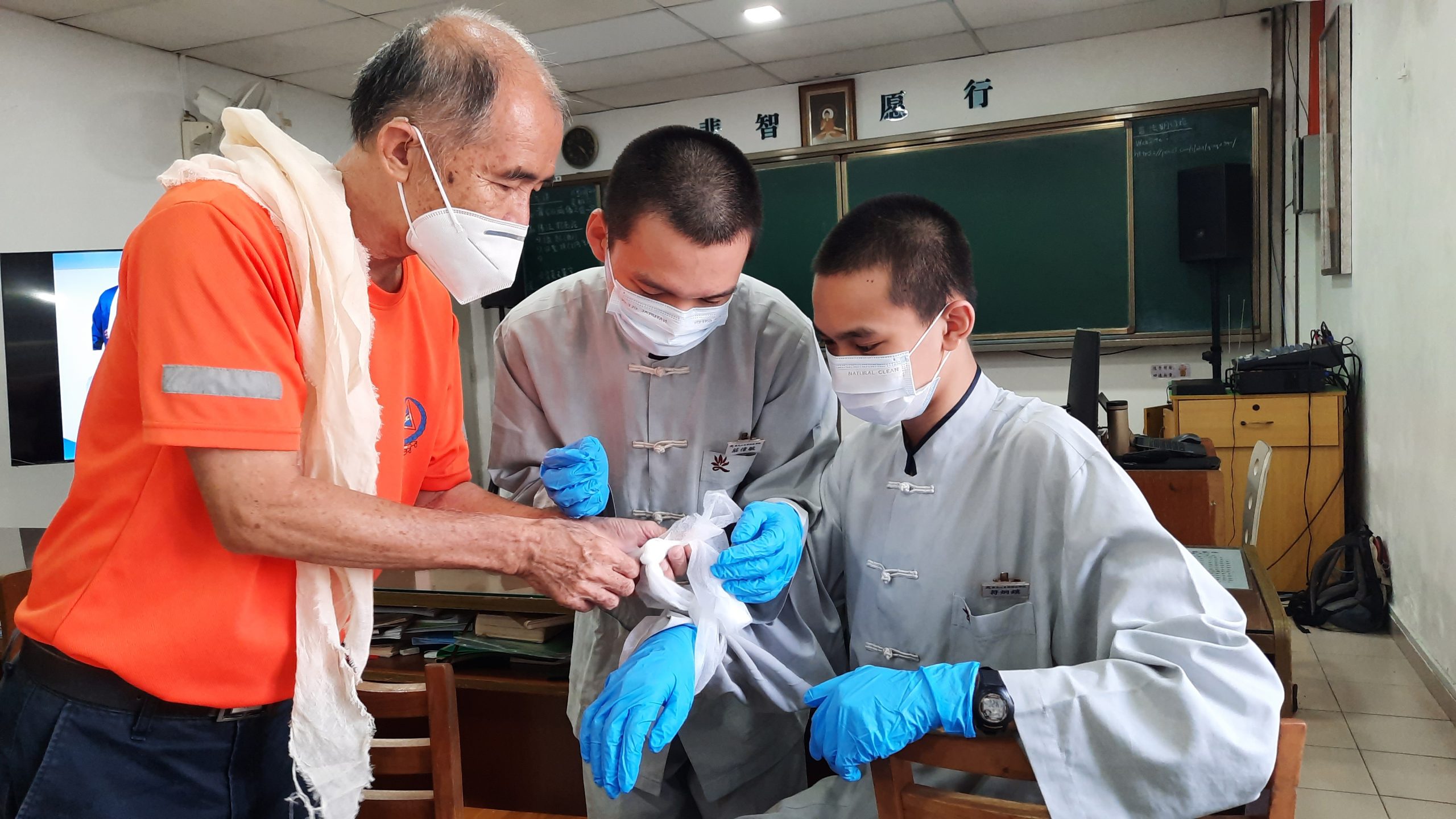東禪佛教學院10月16日邀請佛光民防救護隊隊長慧護法師及佛光民防救護隊徐志平講師一行6人,為佛學院全日制及周日班15位同學講解並示範急救、燒傷、燙傷、創傷及出血的包紮、心肺復甦+AED(自動體外除顫器)等知識,學習更多技能救人於危急時刻,以便更好的服務大眾。