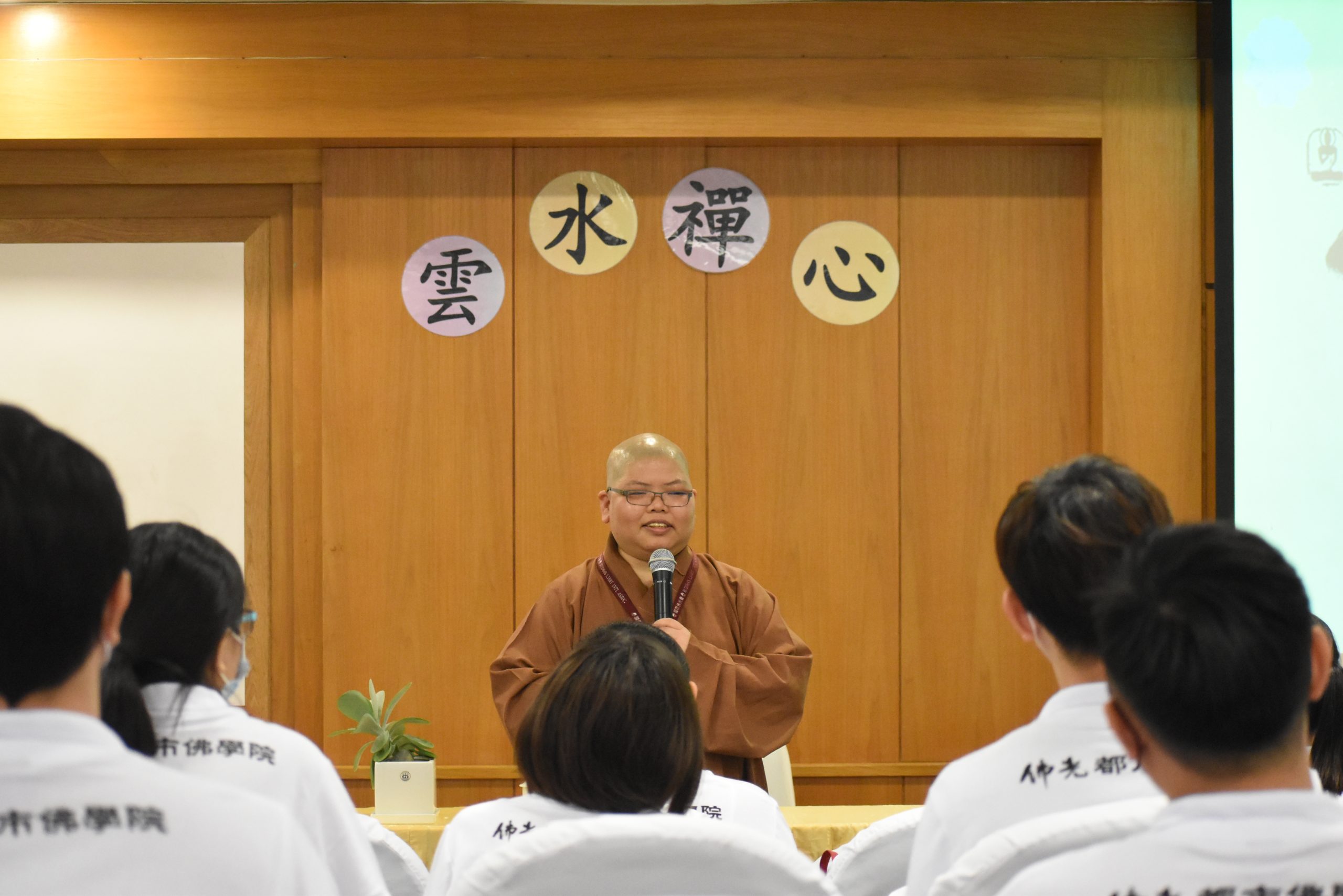 東禪佛教學院教務長妙豪法師在課程說明時為大家解說,「雲水」之意代表心要像白雲及流水般悠遊自在。過境即放下,每一天都是新的開始,不要把煩惱帶到明天。東禪佛教學院學務長如音法師在課堂上透過佛陀的故事和星雲大師的人生經歷,向大家介紹人間佛教的理念。「我是佛」不是傲慢,而是對自己的信心,相信自己本具佛性,終有一日能成就無上菩提。
