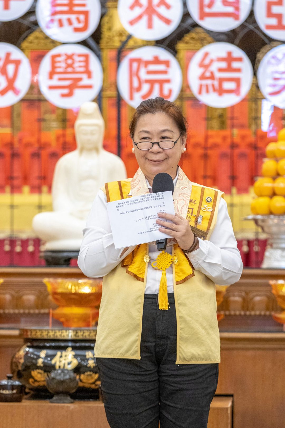 國際佛光會馬來西亞聯合會林汶階會長叮囑結業生信仰的重要性,要把人間佛教實踐在日常生活中。國際佛光會馬來西亞中馬協會楊翠蓮會長則勉勵大家以佛法面對未來人生中的起落,才能活得安然自在。