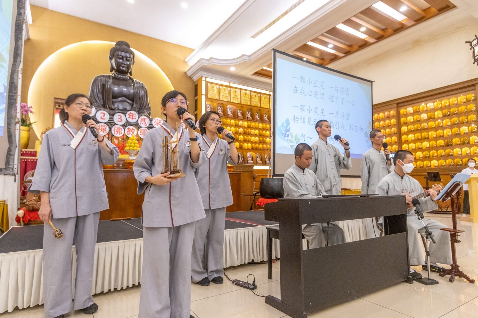 同學們製作的結業影片真誠分享在佛學院的學習及成長,學習佛法後的蛻變促使他們成為更優秀的人。隨後,同學們以人間音緣串燒表演及自彈自唱的〈一心〉,表達對佛光山開山祖師星雲大師的緬懷之情。周日佛學班以極具創意的話劇、歌曲及改篇當紅流行兒歌娓娓道出社會在職青年的學佛心得,引起現場觀眾共鳴,笑聲不斷。