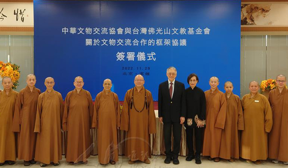 11月,在佛館舉辦「中華文物交流協會與佛光山文教基金會關於文物交流合作的框架協議」,我和中華文物交流協會李群會長,經由網路視訊連線進行簽署第3個5年合作,為兩岸佛教文化藝術交流再添新頁。