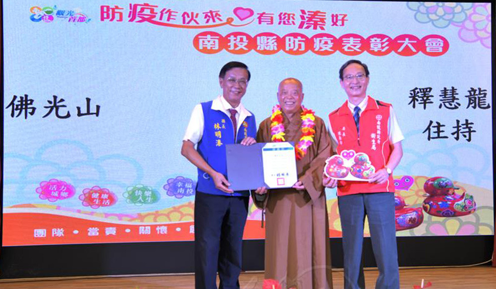 過去3年來,新冠病毒疫情肆虐全球,全球佛光人匯聚愛心,持續捐贈防疫物資及各項援助,台北、新北、台中市政府及南投縣政府均特別表揚防疫有功的機關團體,佛光山寺、國際佛光會中華總會、台北道場、金光明寺、大慈佛社、清德寺等皆獲肯定。
