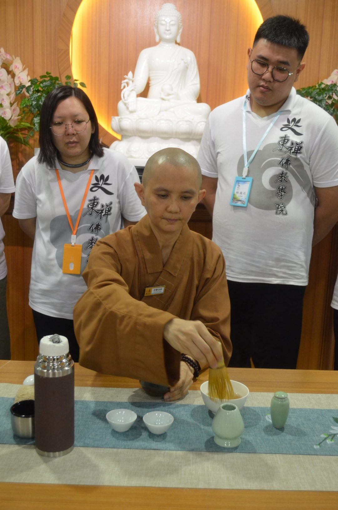 而在茶禪課上,妙豪法師以現代較為少見的宋代點茶方式,將茶與禪相契合。 另外東禪寺有宗法師也講授佛教唯識學論典《百法明門論》表示,心的力量是很強大的,學佛要發心立願,開發自我的無限潛能。
