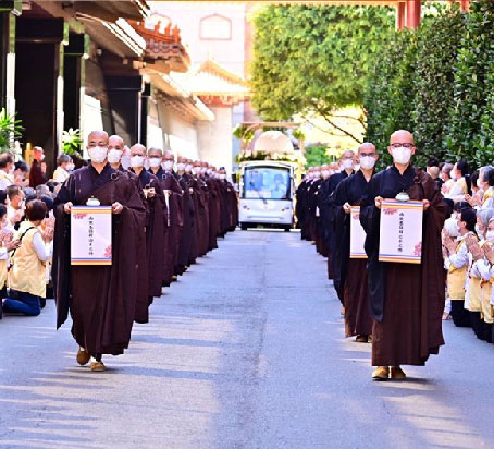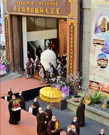 去年2月5日,時值元宵,我們敬愛的師父上人──星雲大師,化世圓滿,捨壽圓寂,享耆壽97歲,令人悲痛不捨。佛光山七眾弟子依循大師遺願,謹遵佛制,七日後,於2月13日舉辦「傳臨濟正宗第四十八世佛光山開山祖師星雲大師圓寂讚頌典禮」,後於台南大仙寺荼毘。當天總統蔡英文親臨弔唁獻花,頒褒揚令;高雄市長陳其邁頒發「高雄市榮譽市民證書」;國民黨主席朱立倫授予榮譽一等獎章。19日,教育部長潘文忠來山親頒國家最高教育榮譽「一等教育專業獎章」,推崇大師是「最佳教育家的典範」。可以說見證大師一生推動人間佛教,弘揚佛法於全世界,為佛教文化交流,力促兩岸和合、世界和平的努力。