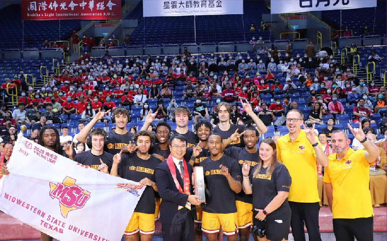 大師創辦的「佛光盃國際大學籃球邀請賽」,因疫情暫停3年後,在8月恢復續辦,共有台灣、美、日、菲、馬、紐西蘭等16支球隊會師高雄巨蛋,最後男、女籃分別由美國德州中西州立大學、世新大學奪冠。參賽者、加油者以及全民熱情參與,舉辦10屆的佛光盃,已成為台灣每年重要的國際籃球賽事。
