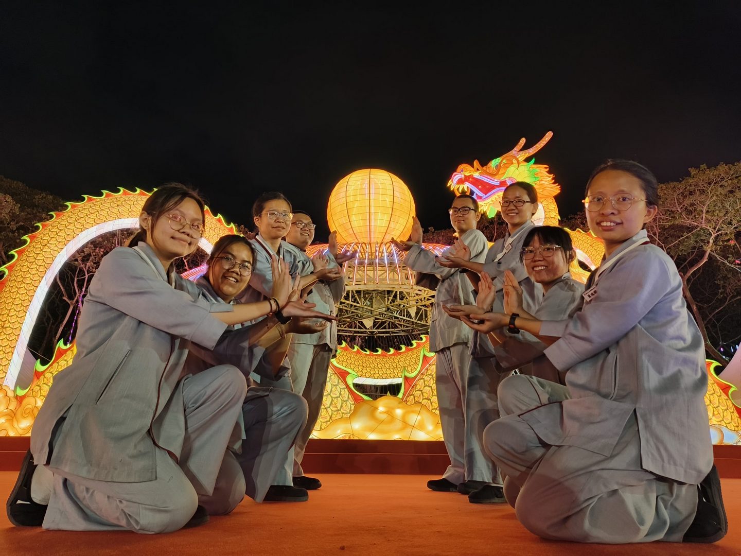 此次春節平安燈會,青年書院的同學們和歷屆佛學院學長們也回來協助。大家在服務大衆的過程中,放下身段學習自己不熟悉的事物。