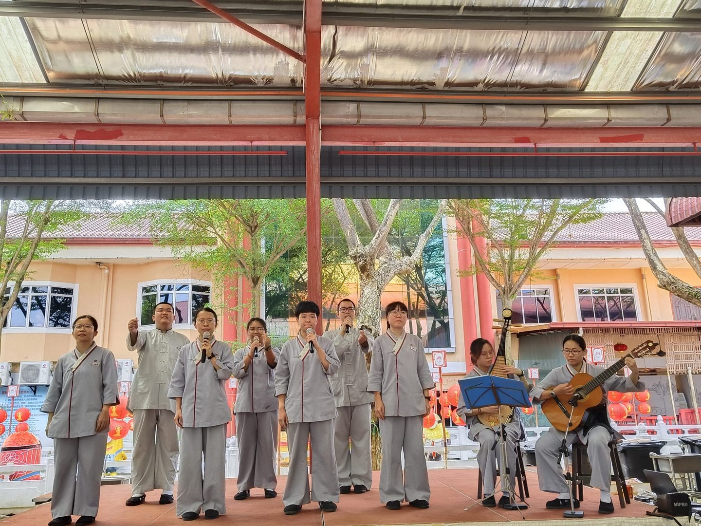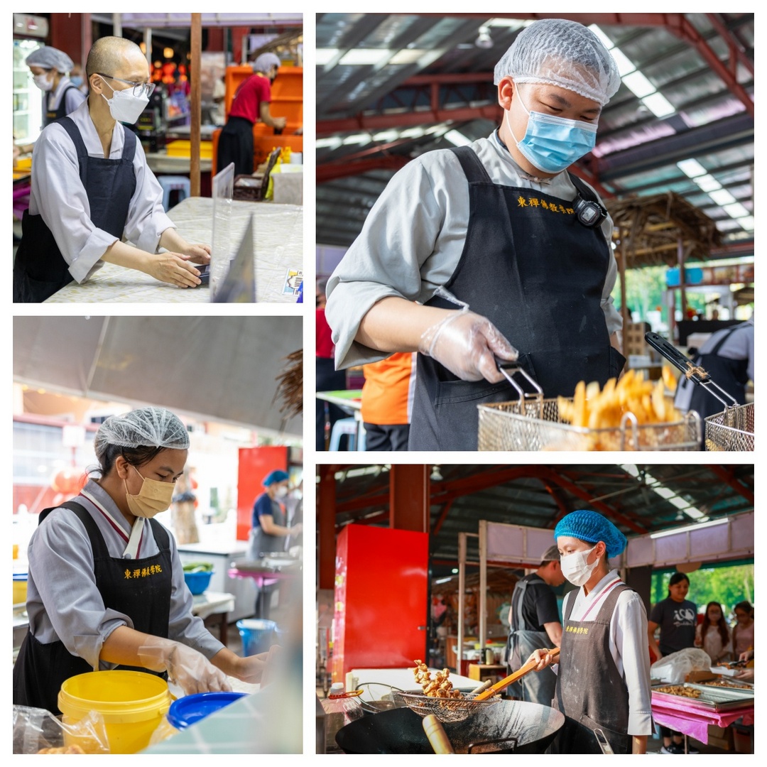 有一天晚上準備盥洗時,有位義工看到我手上拿著的衣服就問了一句:「你們裡面都要穿多一件衣服的嗎?」她這樣一問就讓我馬上想到當初剛來佛學院的自己,真的是完全不適應,因為我超級怕熱,之前在公司和家裏習慣吹冷氣。在新年期間,我被分配到兩個截然不同的崗位,一個是動一個是靜。從中也發現自己即使在水深火熱的美食街,我依然可以非常專注地把當下的任務做好,這在以前是不可能做到的。