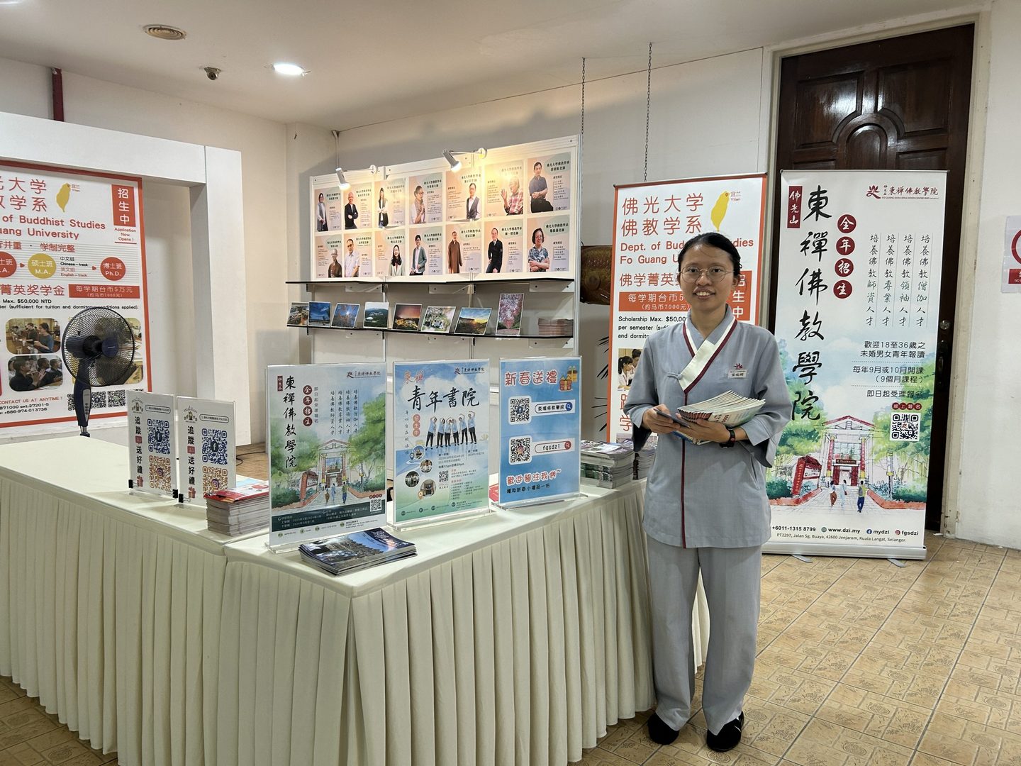 東禪佛教學院在燈會期間開放讓信衆前來參觀,認識佛光山教育體系。有別於往年,今年教育館特增設了一系列沉浸式體驗,讓大家瞭解專注力的重要性。大衆從宋代點茶的過程中學習沉澱身心;折豆腐乾棉被考驗大衆如何調伏內心;頂水禪則訓練走路的威儀;以及禪繞畫讓民衆放鬆心情,專注畫畫的當下。
