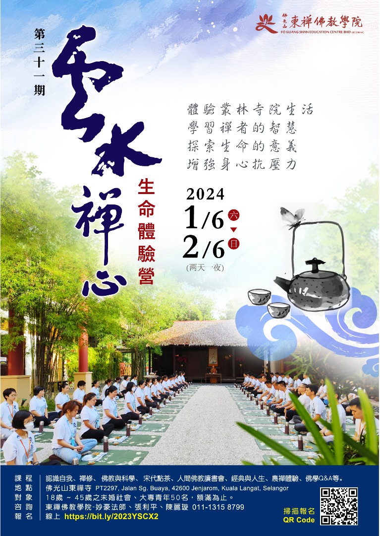课程内容:認識自我、禪修、 佛教與科學、 宋代點茶、人間佛教讀書會、經典與人生、農禪體驗、佛學Q&A等。