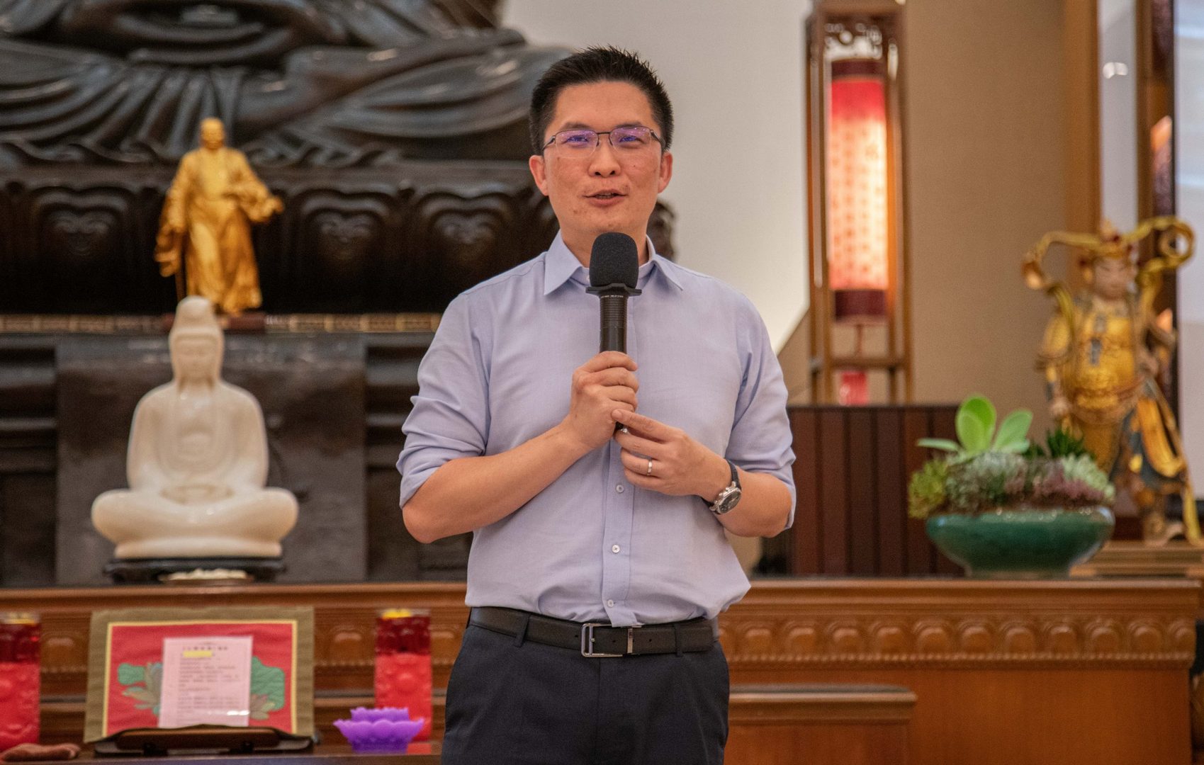最後一天結營典禮,馬來西亞教育部副部長黃家和抽空蒞臨佛光山東禪寺關心青年領袖們學習狀況並給予加油勉勵。