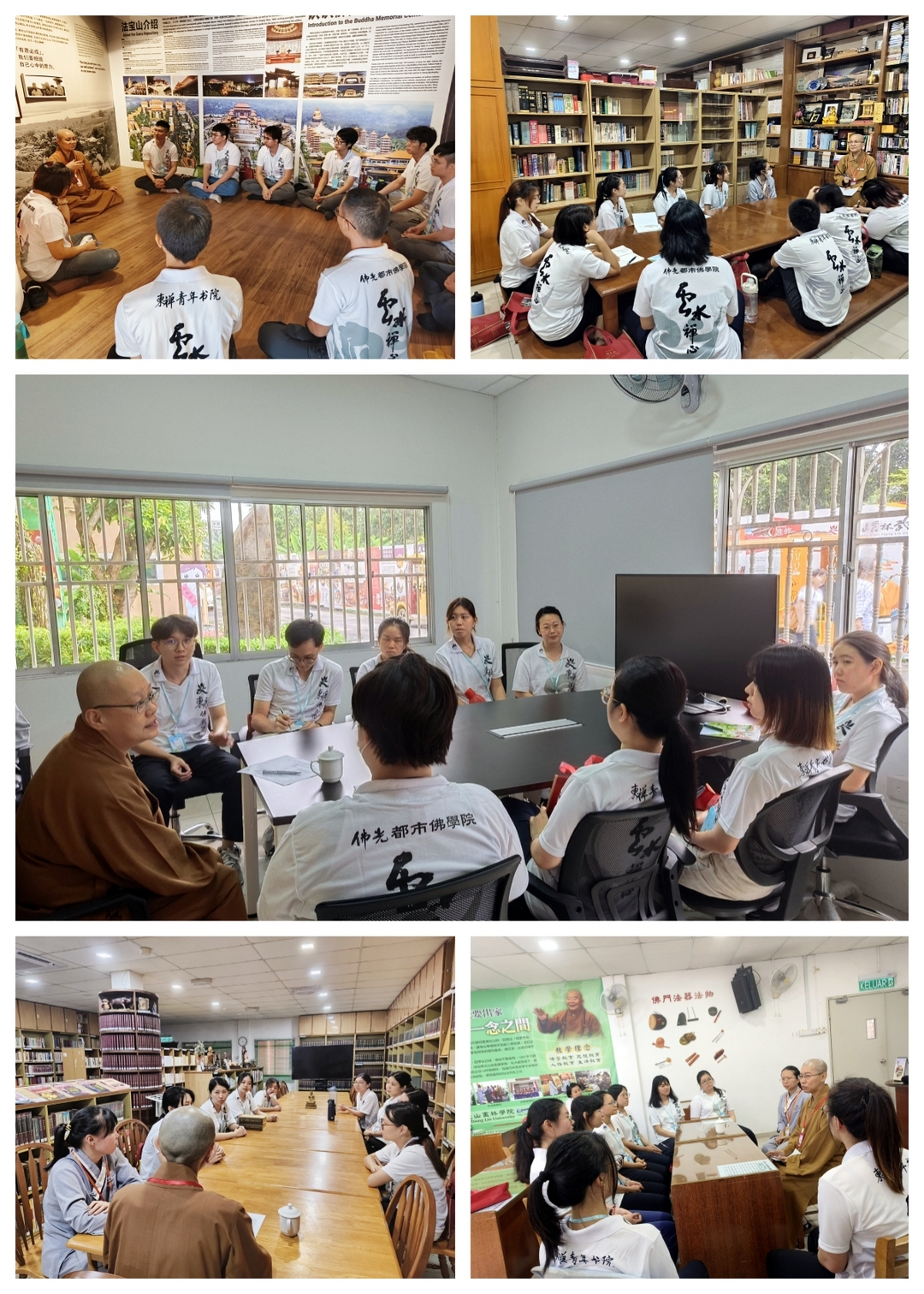 馬來西亞青年團輔導法師有宗法師講授佛教重要的唯識經典《百法明門論》,以「炊沙作飯」的譬喻說明因果關係;馬來西亞拉曼大學校長拿督尤芳達博士帶來專題「佛教與科學」,闡述佛教與科學的交匯點;東禪寺副住持滿慧法師引導青年以歷史角度剖析《妙法蓮華經》,並以譬喻故事鼓勵大家,眾生皆有佛性、皆能成佛;佛光山新馬泰印教區總住持覺誠法師教導學員們基礎禪修-毗盧七支座法,學習專註呼吸、察覺自己的念頭,把心裡的煩惱、執著放下,不要讓自己被煩惱束縛;妙豪法師在蘭毗尼園帶領戶外健身禪及宋代點茶。點茶、喝茶的過程中,學員們學習專注一心、覺知當下。東禪佛教學院有燈法師以一部微電影帶領學員們探討「人生的壓力」。