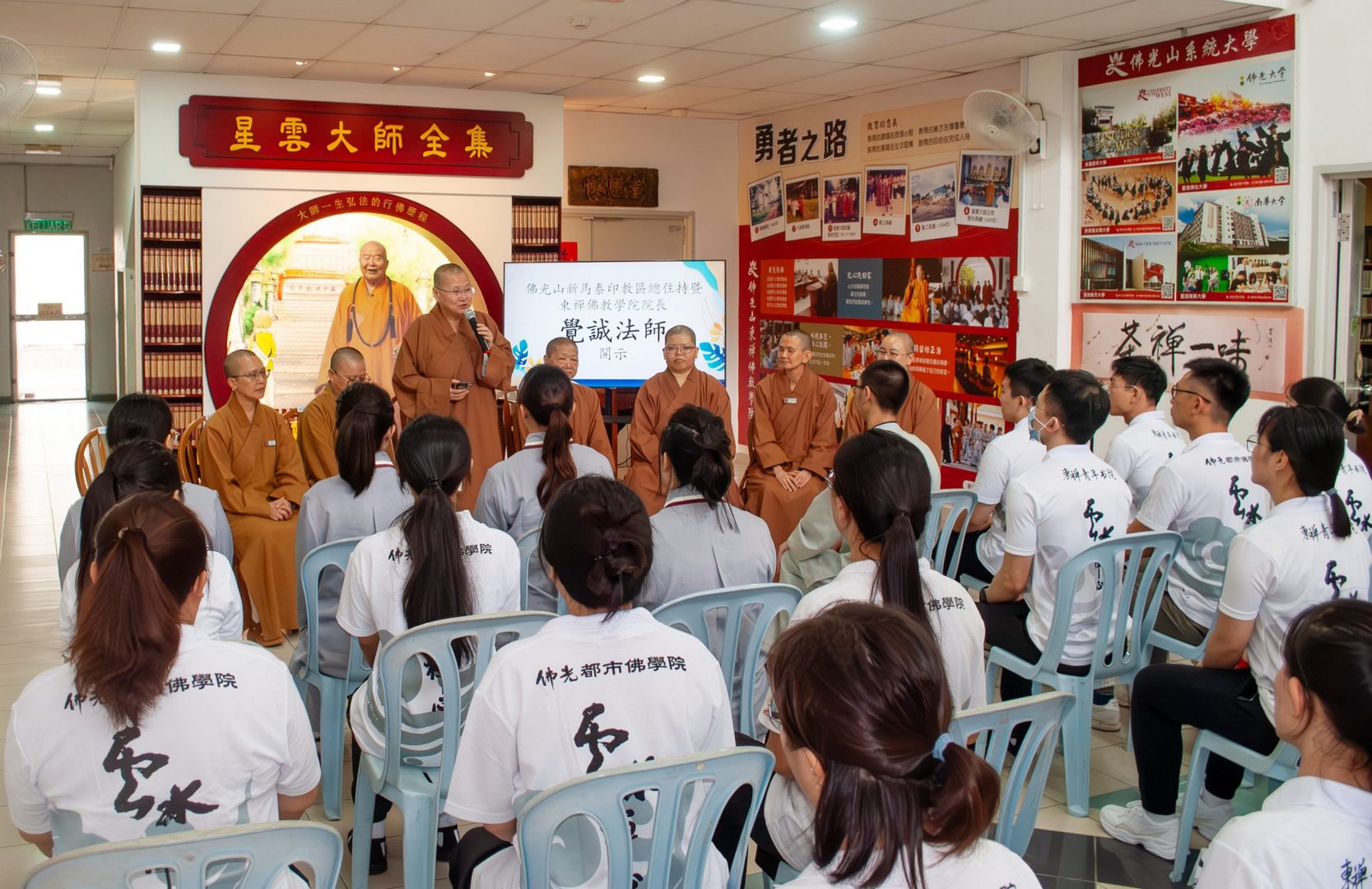 佛光山新馬泰印教區總住持暨東禪佛教學院院長覺誠法師在致詞中引用丹霞禪師「選官不如選佛」的典故。「你們今天能來到佛學院,真的做對了選擇!」他強調,人生的關鍵在於找到正確的方向和道路,遇見佛法、認識真理能夠讓大家發現自身的寶藏與智慧。他鼓勵青年書院同學把握因緣參與全日制課程,期許大家透過佛法的滋養茁壯成長為參天大樹,為佛教、為世界帶來積極的影響和貢獻。