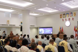 印尼佛教學院院長覺誠法師分享星雲大師對印尼佛教的期許,認為印尼需至少100年讓人間佛教遍地開花。他勉勵大眾:「三年後、十年後、二十年後,你會成為什麼樣的人?」並強調,唯有不斷努力與精進,才能真正實現願力,為佛教及社會做出貢獻。